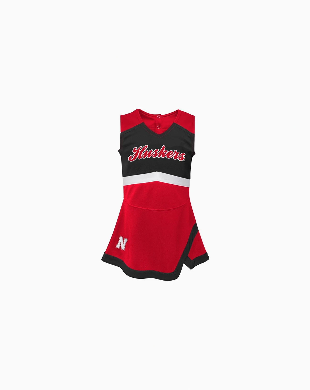 Dress your little one in Nebraska Huskers spirit with this Cheer Captain Dress Bloomers Two-Piece Set. This adorable cheer dress features the team's name delicately embroidered across the chest and the iconic Nebraska Huskers logo on the skirt, ensuring your little one is dressed to impress. The set includes matching bloomers for a complete and coordinated look that will make your little fan the star of every game day gathering.