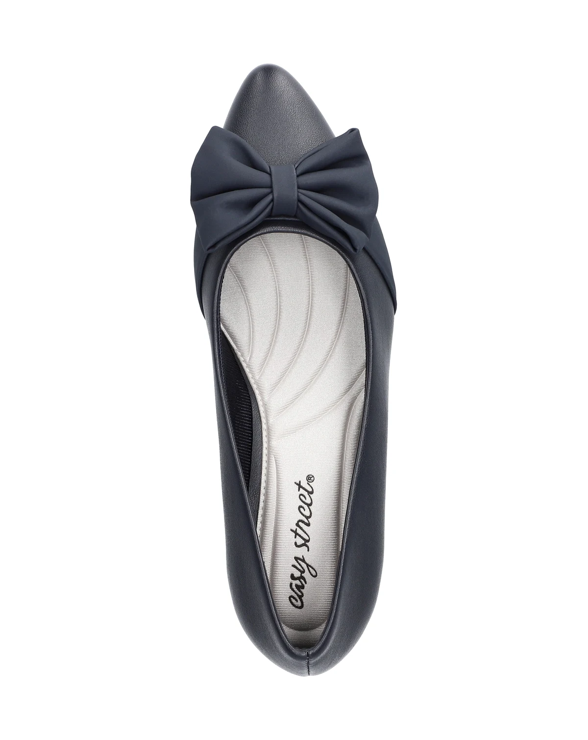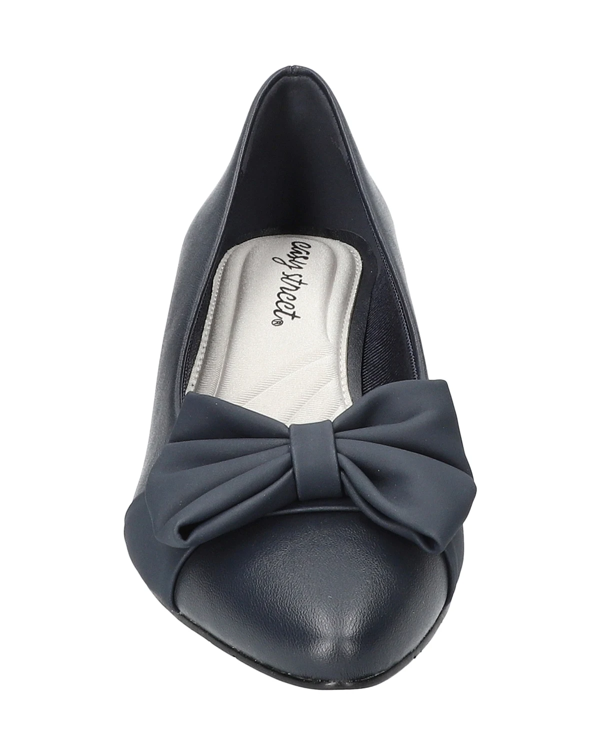 Stand out in style with the Alva dress pump by Easy Street. Designed with a contemporary underslung block heel, the on-trend, unique bow steals the show. The Easy Flex outsole and generously padded insole give this contemporary style all the fashion and comfort you need to take on your day and elevate any outfit