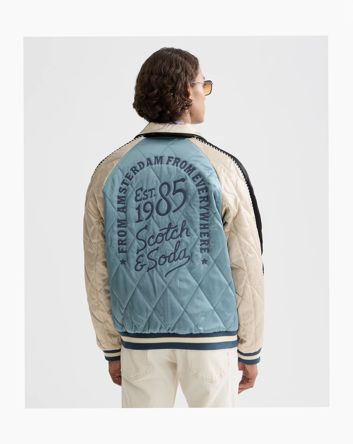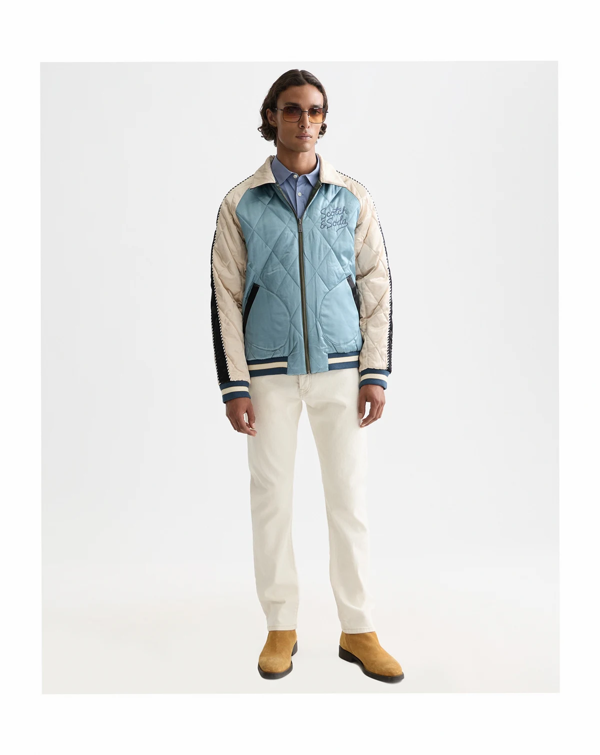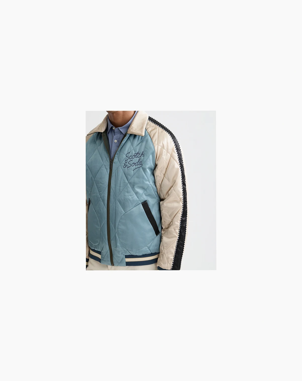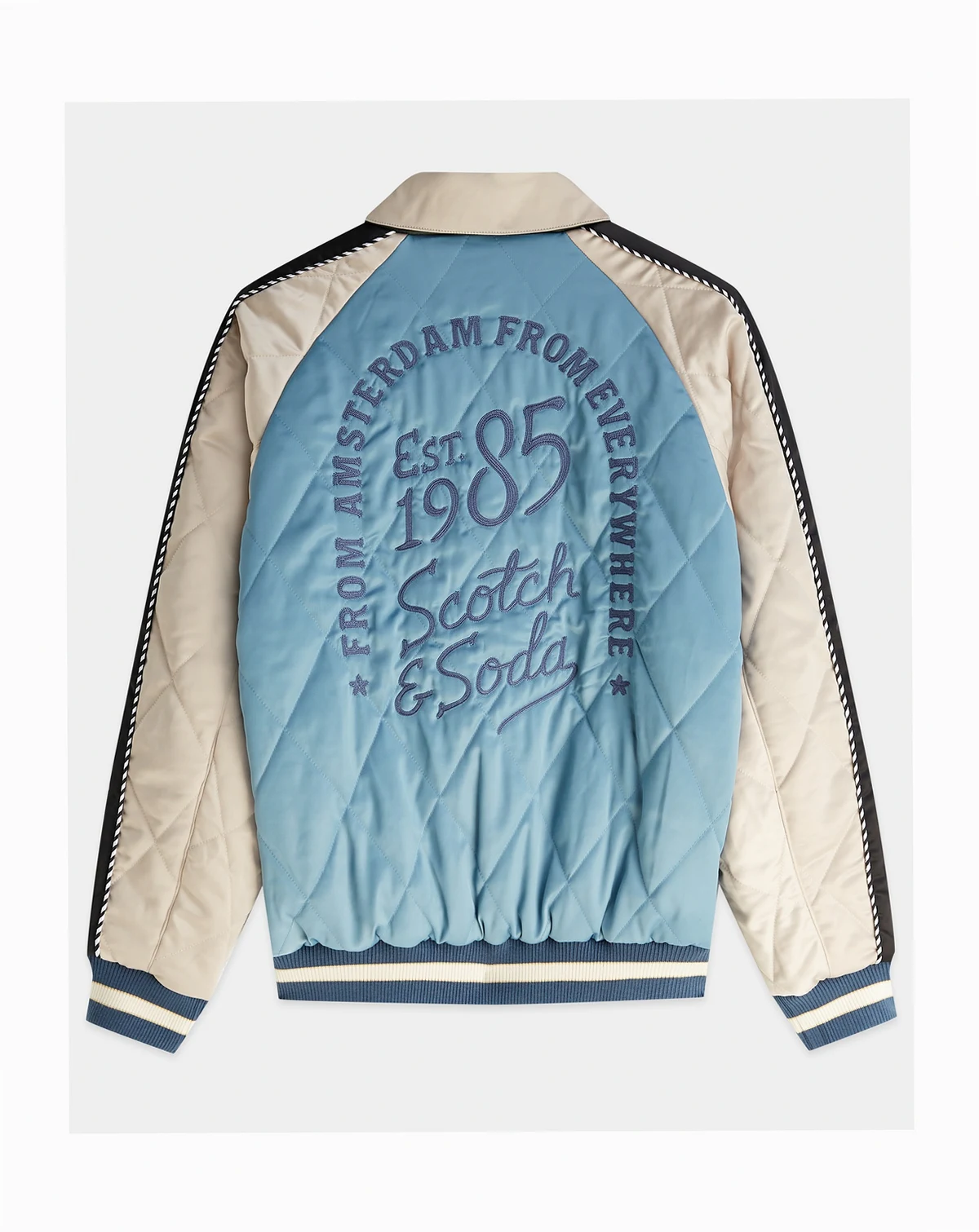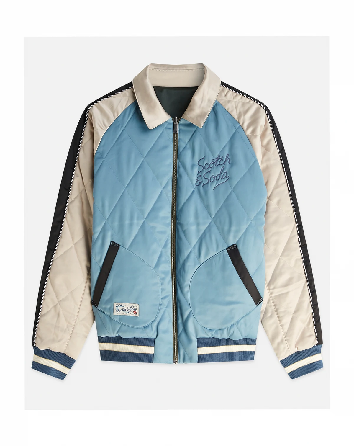 Celebrating a 40th anniversary with unique artwork, this long-sleeve jacket from SCOTCH & SODA makes a commemorative style statement. A point collar, ribbed cuffs, and double front slanted pockets complete the look.