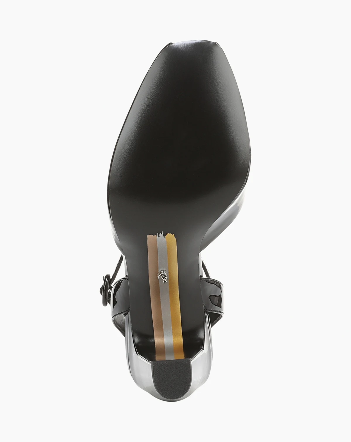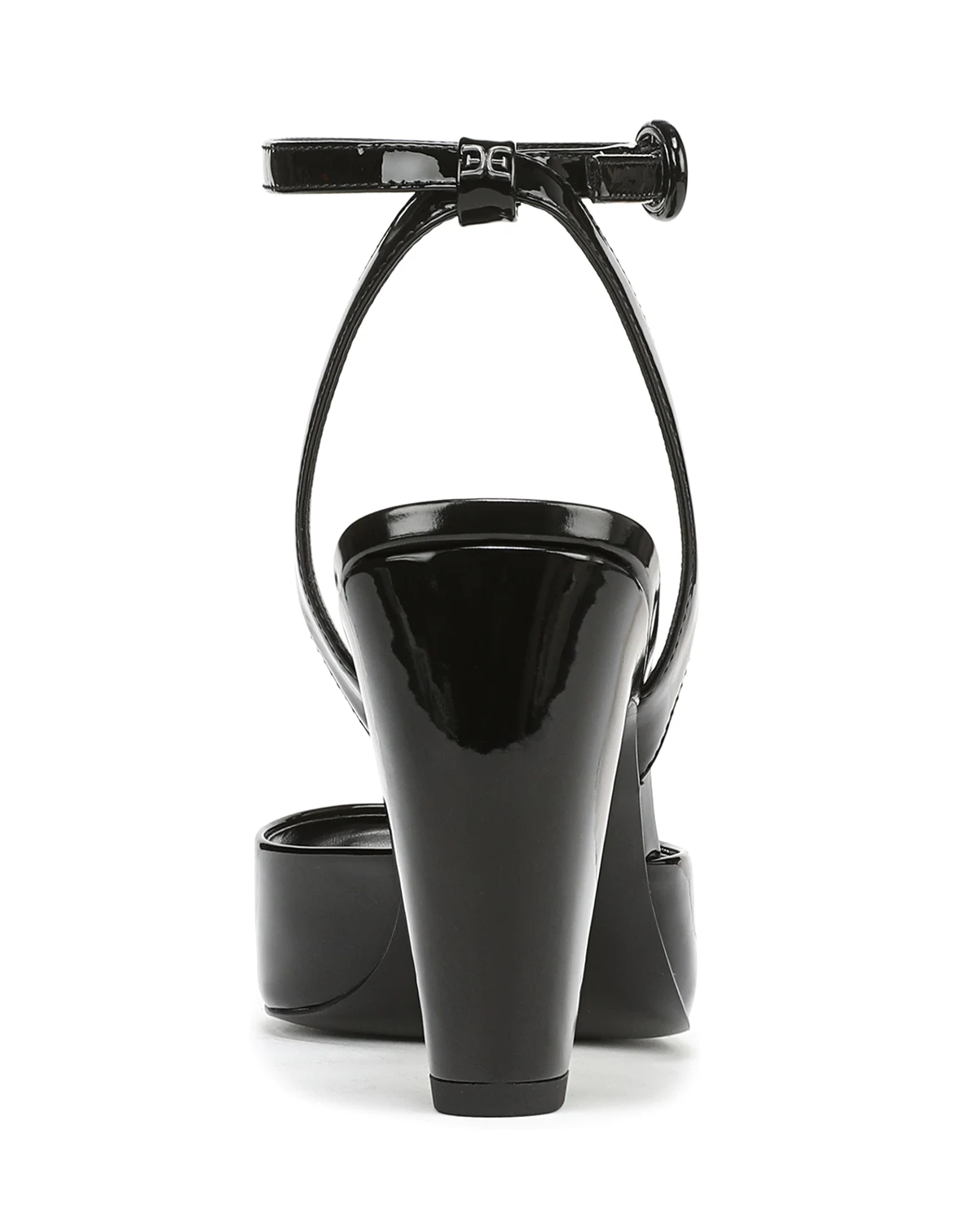 Retro-inspired with modern edge, the Wrenna heel features a vintage peep toe and ankle strap in a standout textured finish.