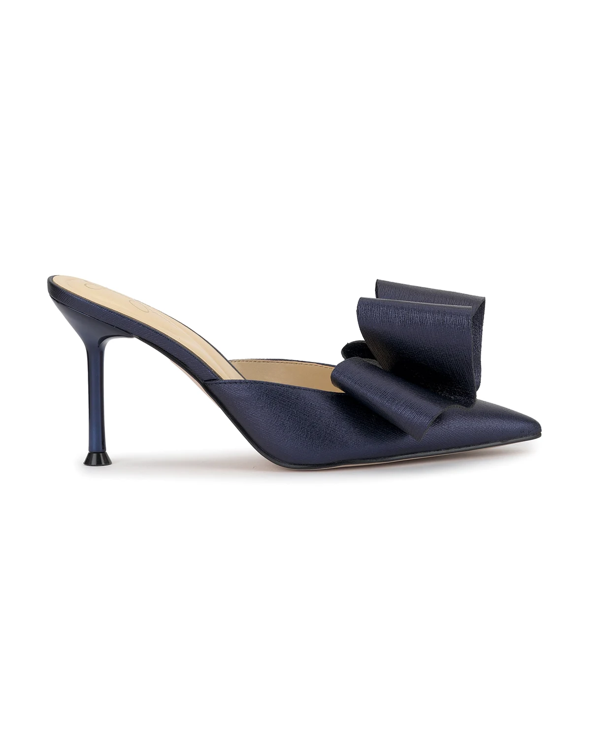 Step up your style with these Jessica Simpson mules, featuring a sleek stiletto heel and a pointed toe. They offer a slip-on design with a single sole and are accented with charming bow detailing for a chic finish.