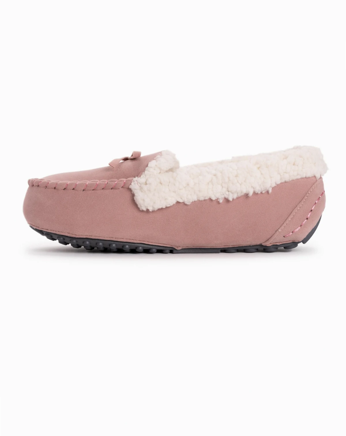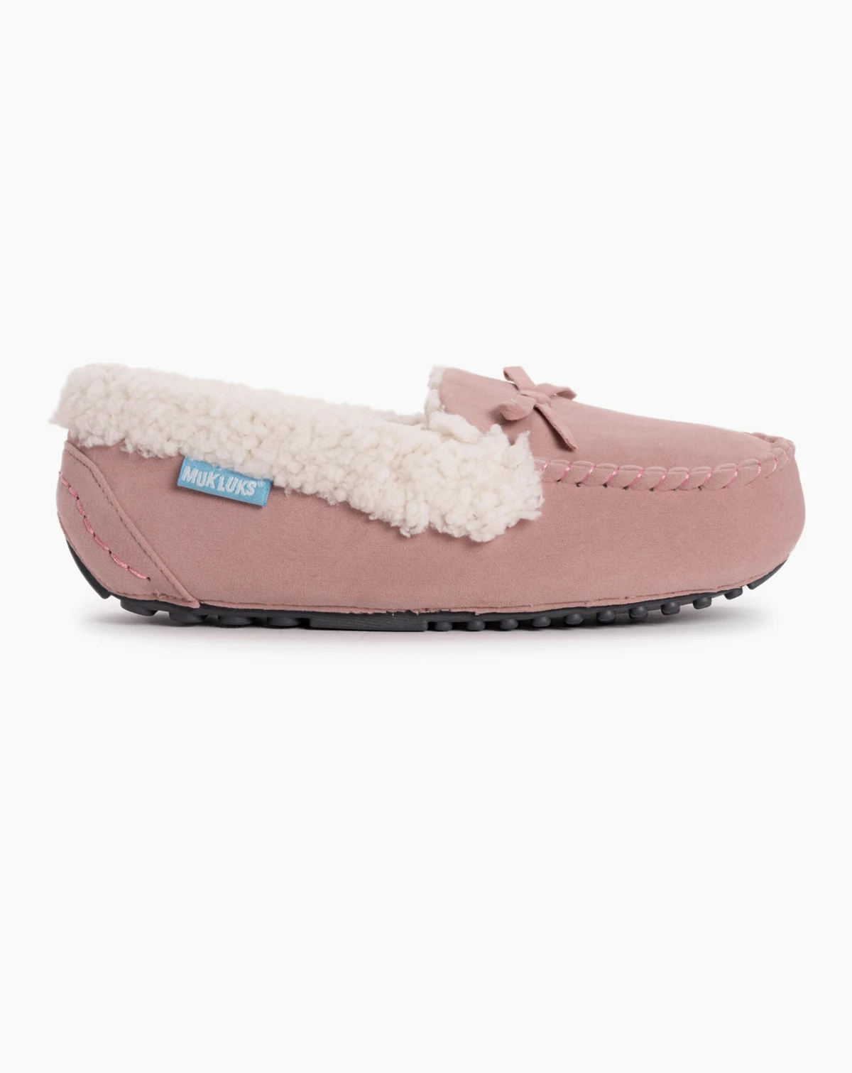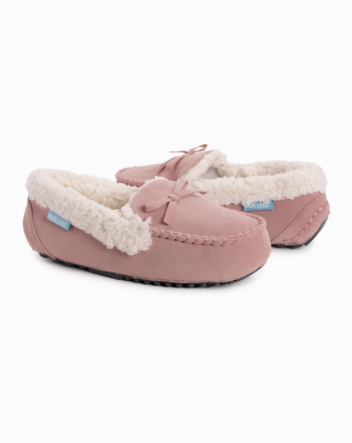 Slip into Muk Luks Women's Jayla Slippers for all day comfort. With a classic moccasin shape, these sweet slippers will keep feet feeling cozy with soft faux fur while foam insoles feel like a cloud for your feet.