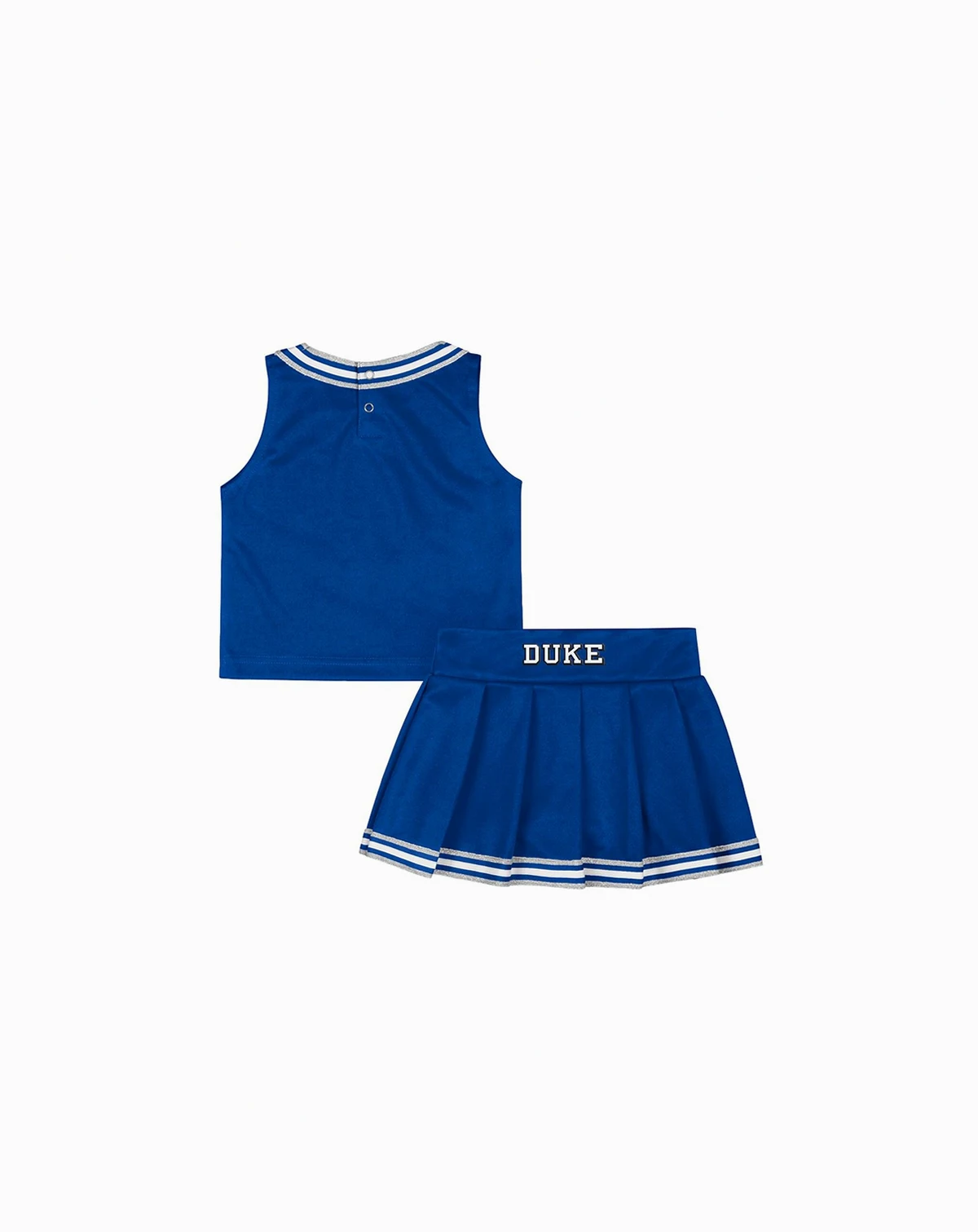 Get your favorite little fan ready to cheer on the Duke Blue Devils with this adorable Lollipop Park Cheer Two-Piece Set by Colosseum. The top features a hidden zipper and striped edge taping, while the skirt has an elastic waistband and hidden boy shorts for comfort and security. Printed Duke Blue Devils team graphics let everyone know who she's rooting for.