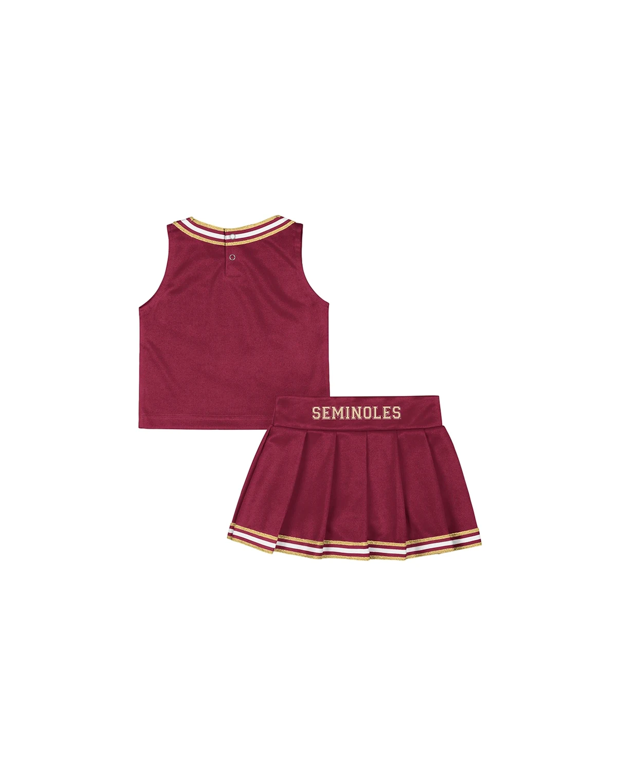 Get your favorite little fan ready to cheer on the Florida State Seminoles with this adorable Lollipop Park Cheer Two-Piece Set by Colosseum. The top features a hidden zipper and striped edge taping, while the skirt has an elastic waistband and hidden boy shorts for comfort and security. Printed Florida State Seminoles team graphics let everyone know who she's rooting for.