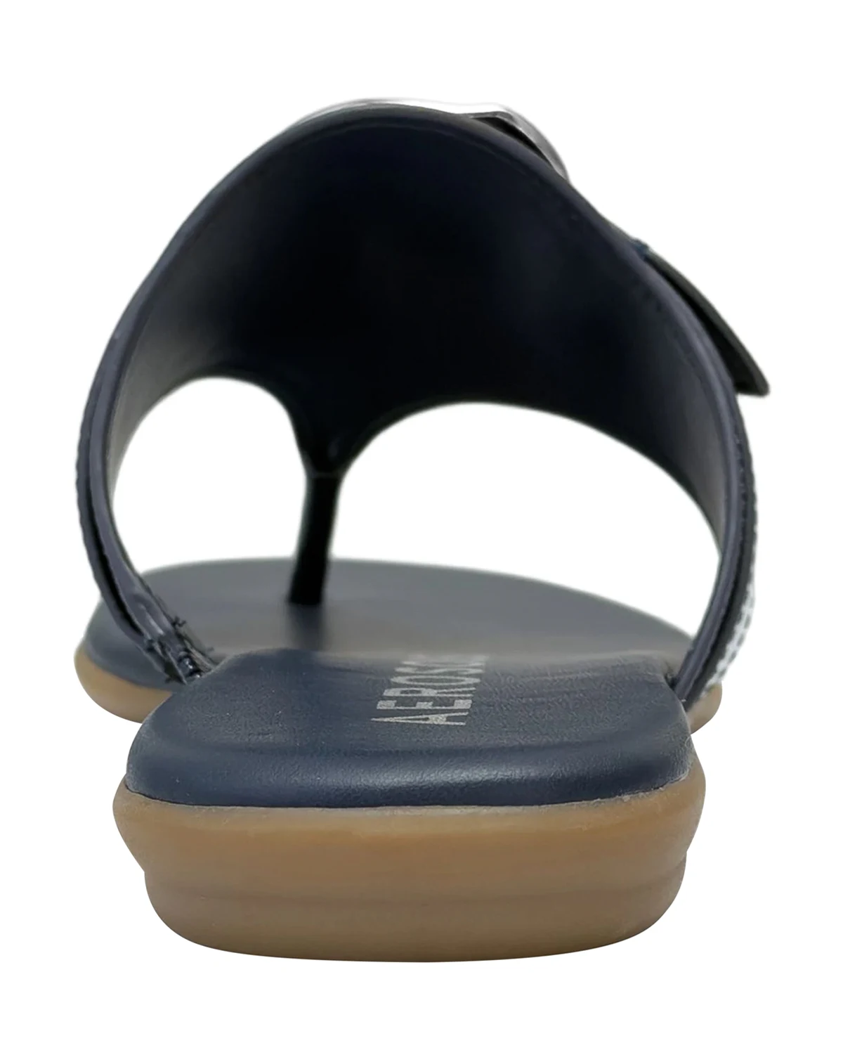 Glitz brings a little drama to an otherwise simple silhouette with an oversized gold-tone embellishment. The thong sandal is a throw-on-and-go staple, whether you're wearing jeans, shorts or a dress.