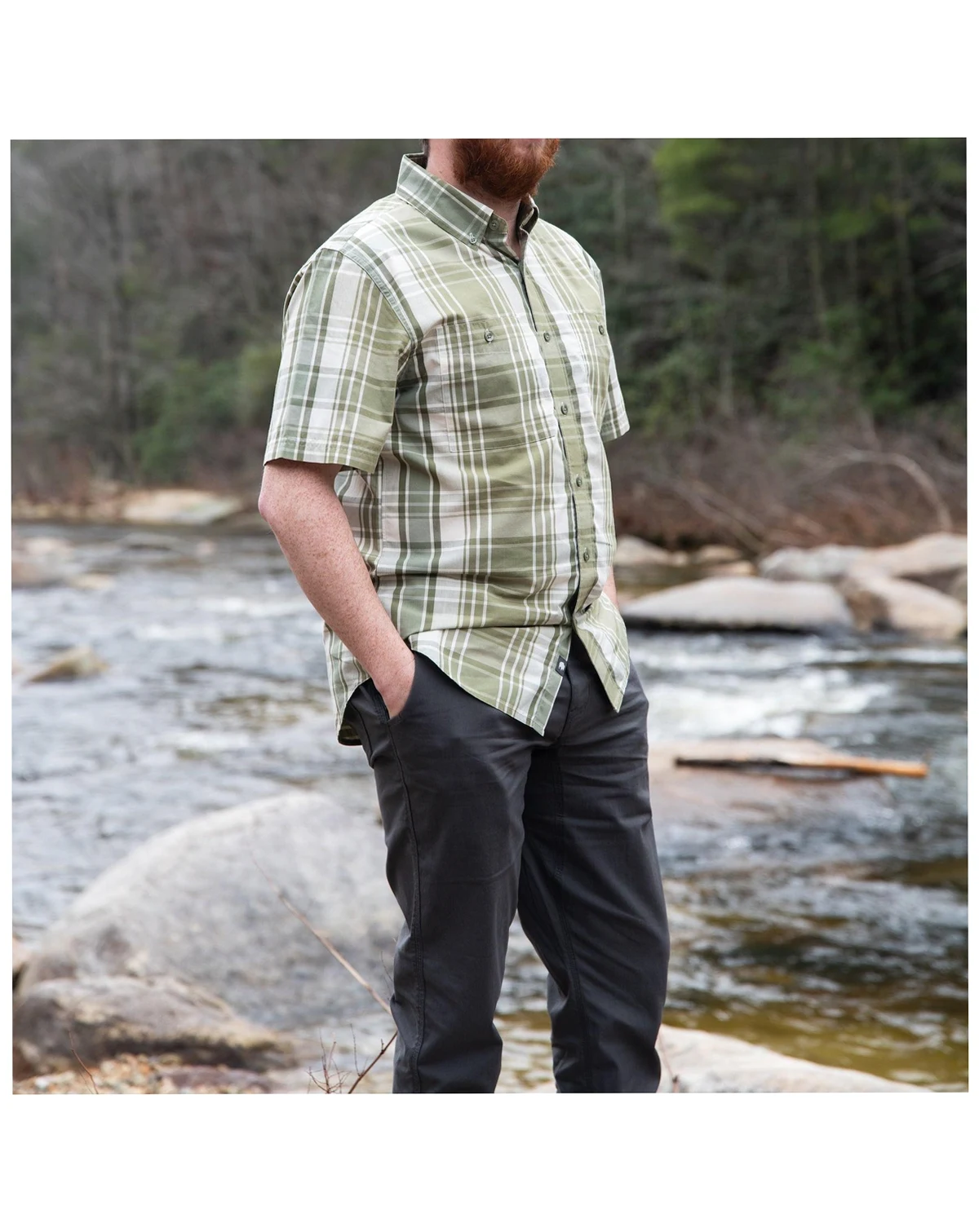 The Denison Short Sleeve Woven Shirt is designed to be your summer uniform. Its classic styling ensures easy mixing and matching with just about anything. Crafted with the Better Cotton Initiative (BCI), a leading sustainability initiative for cotton, this shirt reflects our commitment to responsible practices. With branded dyed-to-match buttons and two chest pockets featuring button closure, it seamlessly combines style and functionality for your summer adventures.Crafted with Better Cotton Initiative (BCI). Better Cotton is the world s leading sustainability initiative for cotton3oz 60% BCI Cotton, 40% PolyesterClassic FitTwo chest pockets with button closureBranded dyed to match buttonsMen's Size Chart