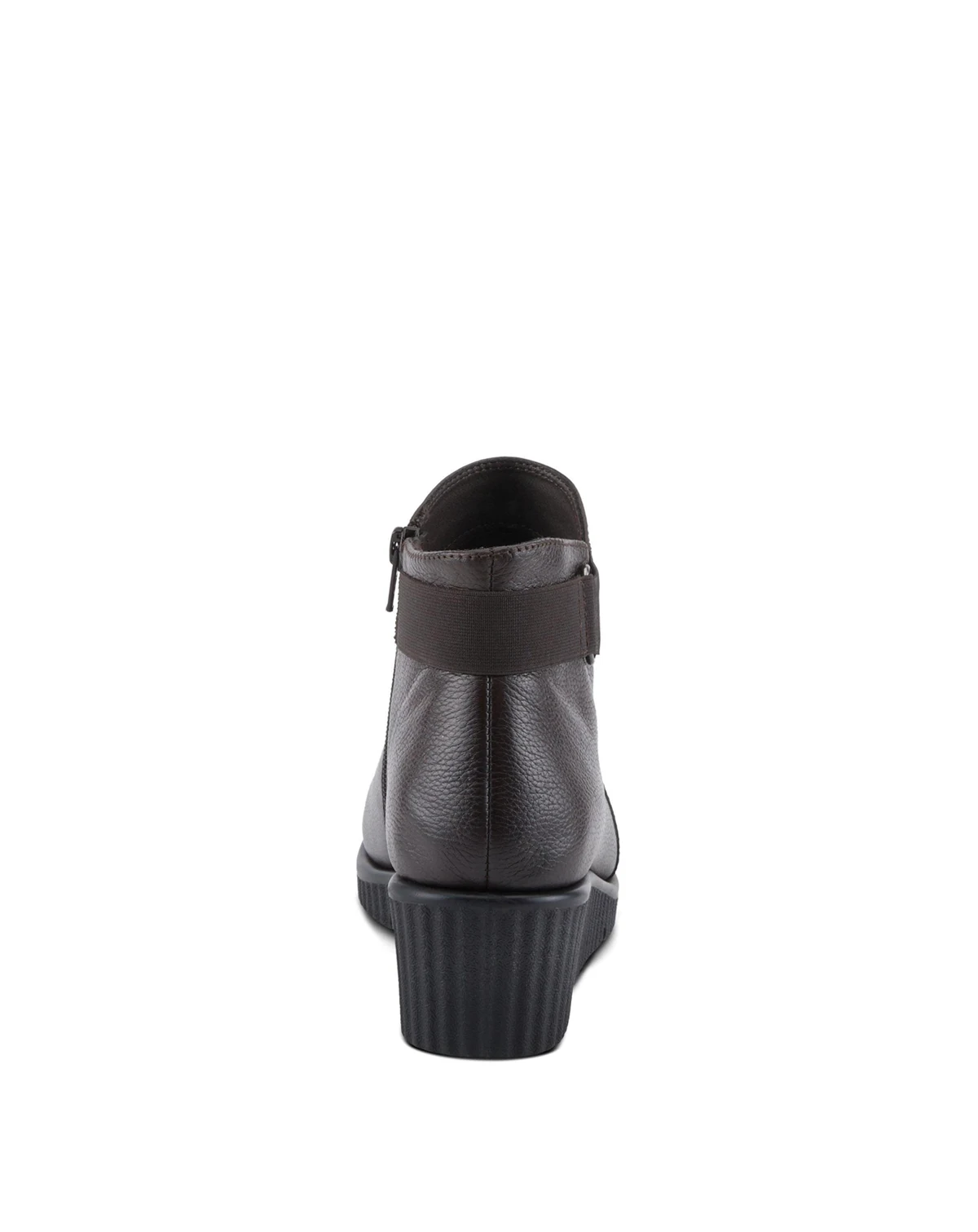 A sleek pebbled leather ankle boot designed to bring you comfort and support all day featuring an inside zipper for easy entry all on a modern ribbed, wedge sole for the active contemporary women.