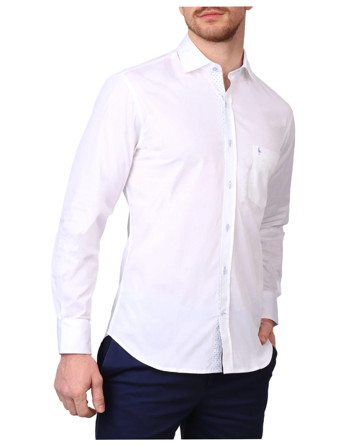 Experience the ultimate blend of style and comfort with our Tailorbyrd long sleeve sport shirt. Made with our signature contrast trimming on the placket and cuffs, this solid shirt adds a touch of sophistication to any outfit. Elevate your everyday look and stand out from the crowd.