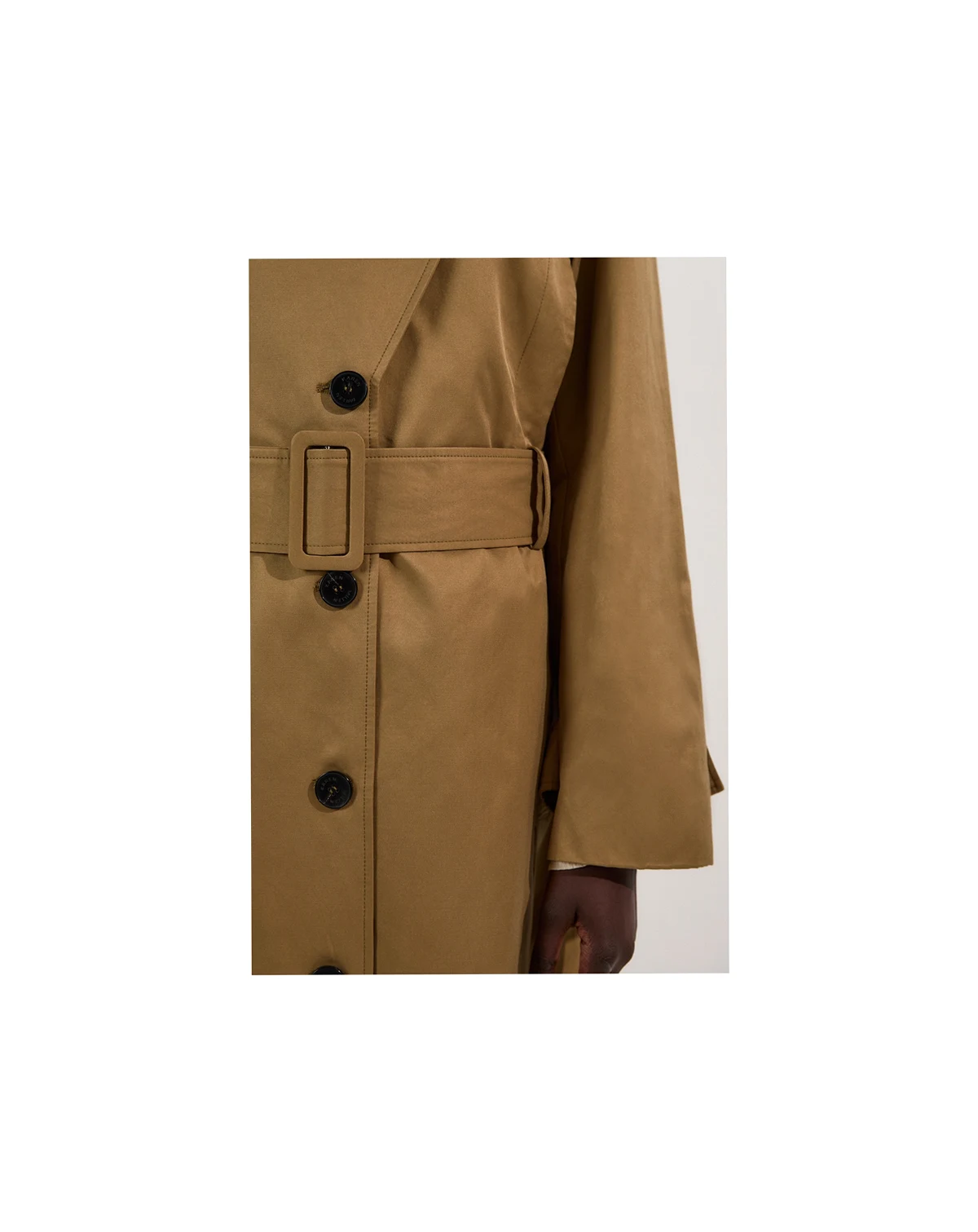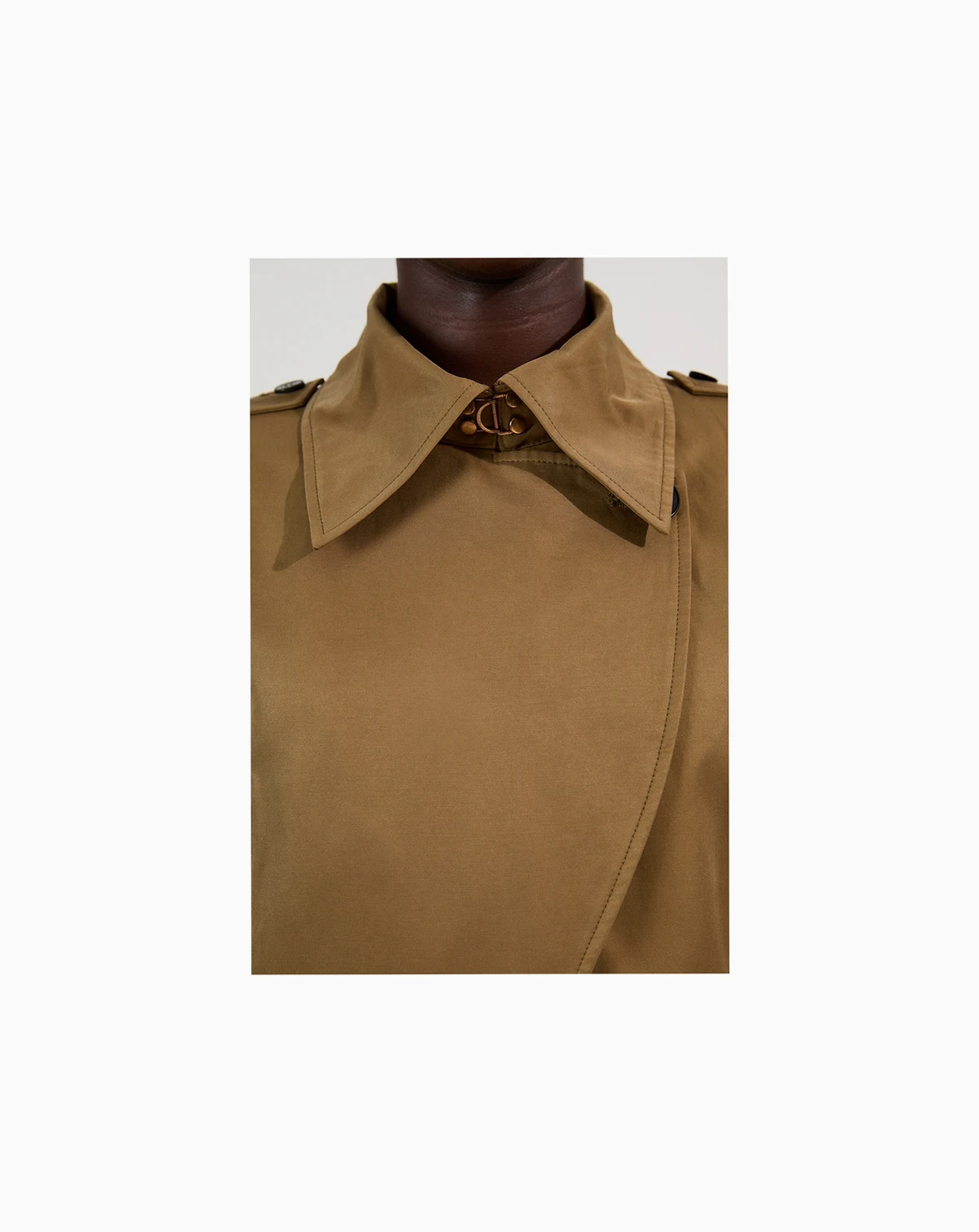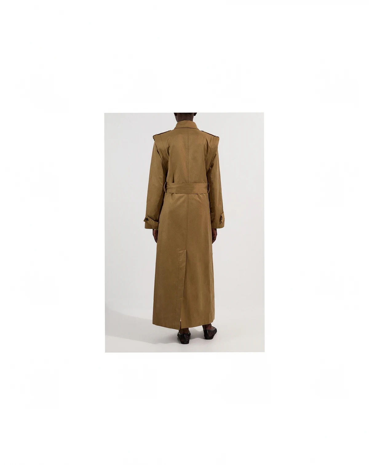 Dramatic strong shoulder design creates a structured, contemporary silhouette. Adjustable belted waist for a customised fit and defined shape. Full-length maxi cut offers maximum coverage and timeless appeal. Classic trench coat styling with traditional collar and button-through front. Crafted from 100% cotton for breathable comfort and durability.