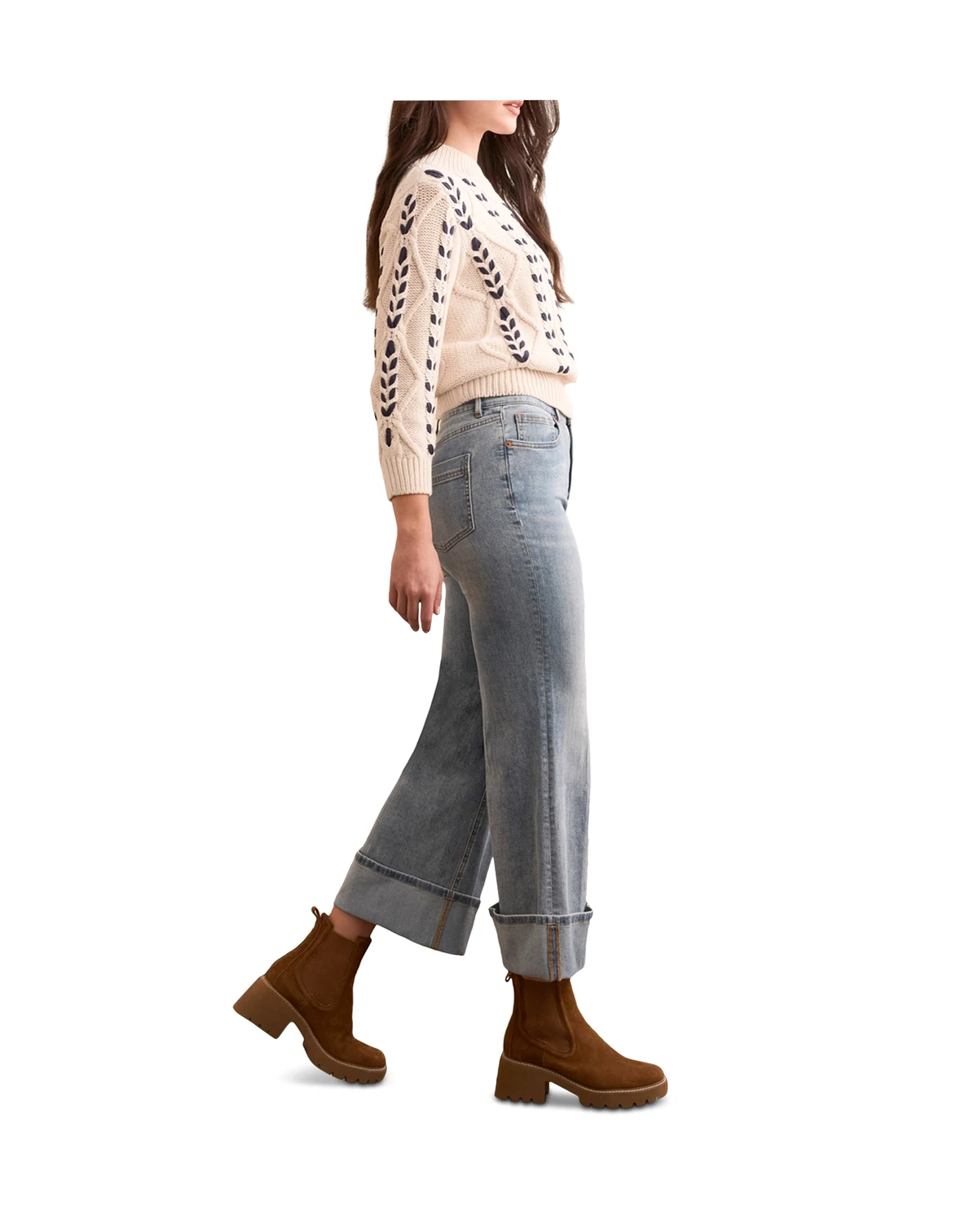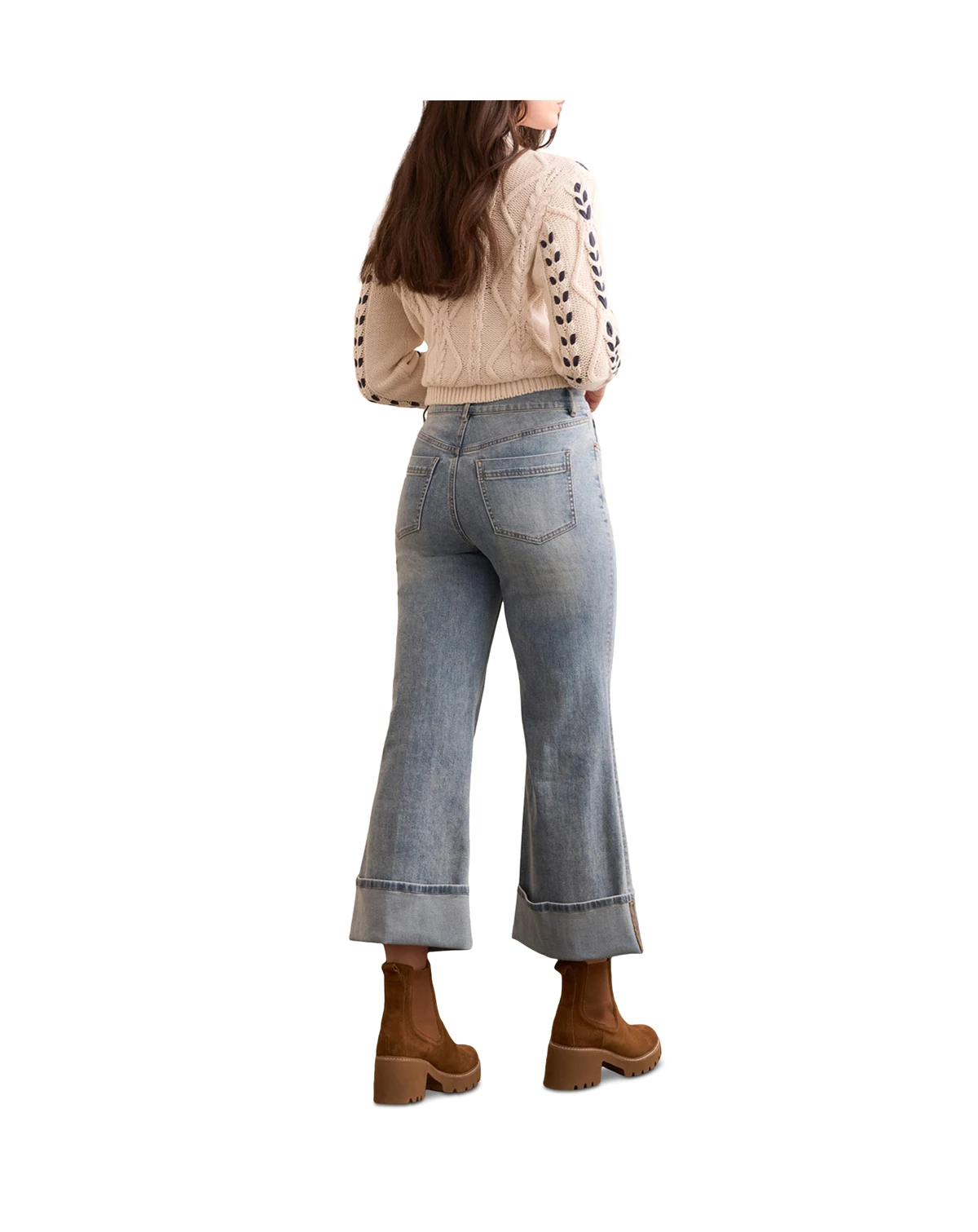 Channel retro vibes in these jeans, designed with flowy palazzo legs and finished with cuffed details for a modern twist. The hugging fit at the upper creates a flattering shape, while the button and fly closure adds a timeless touch. Crafted from classic denim with a hint of stretch, they offer comfortable flexibility for easy movement.