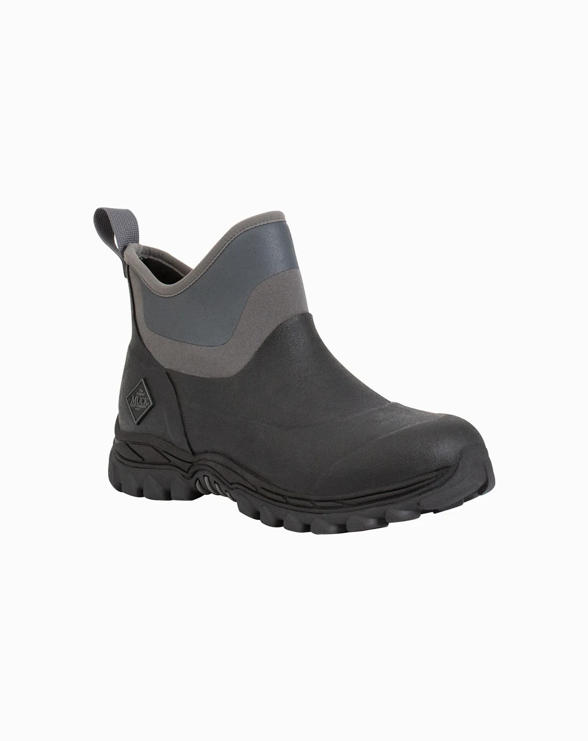 Introducing the Arctic Sport II Ankle. This new style is crafted from Muck's traditional hand laid rubber. To reduce weight and increase flexibility, we utilized our Muckskin technology. This technology features a printed rubber coating over neoprene that is 100% waterproof, 100% MUCKPROOF and abrasion resistant. This new ankle height allows for an easy on/off experience for all your wet, cold chores..