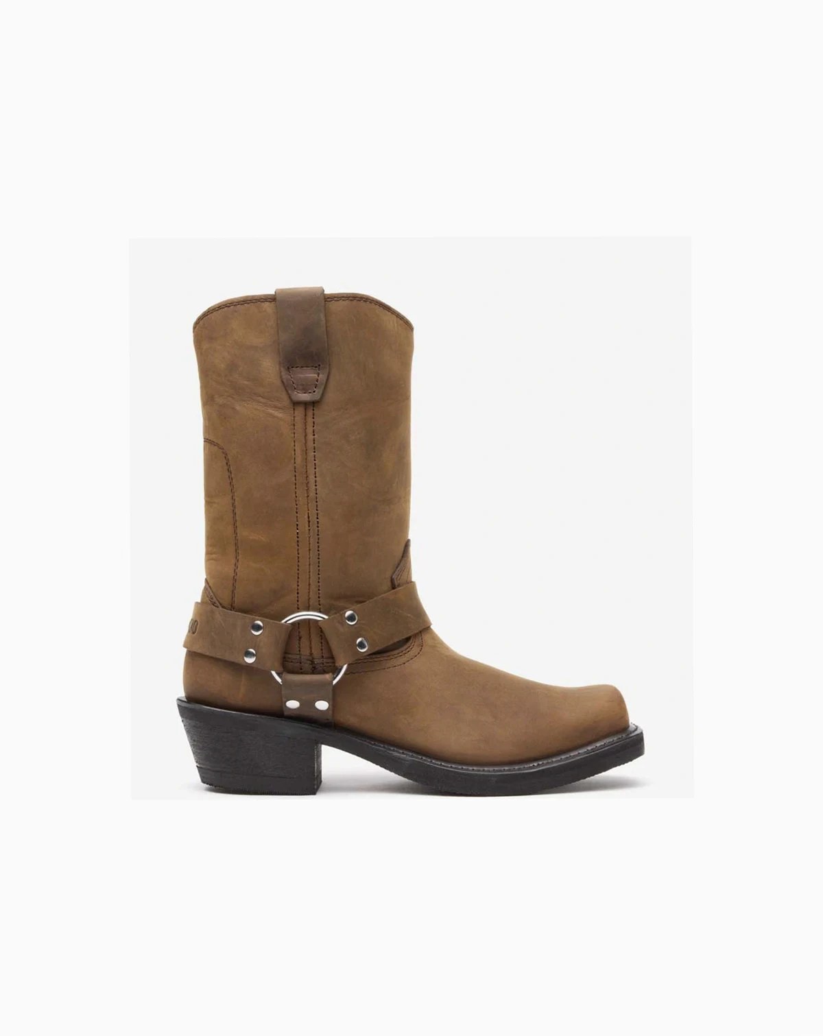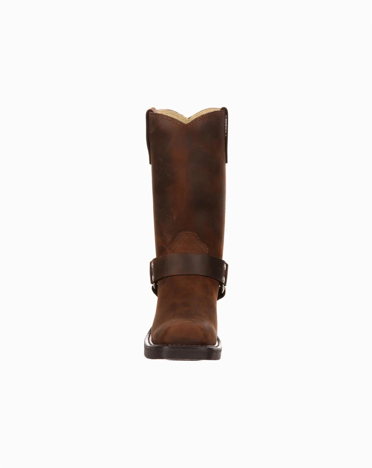 Durango utilized hardy brown leather on the upper to create a classic-looking Harness boot. The exterior on this 10" boot was kept very minimal, therefore this boot can look good with anything from jeans to a free-spirited dress. It has leather pull tabs to allow you to get these boots on/off easily. Soft, smooth-textured leather has been added to the interior (on the shaft) to make these brown boots superbly comfortable. There is also an insole that supplies just the right amount of cushioning to keep your feet at ease. The outsole provides durable slip and oil resisting and gives you great traction. Whether you tend to walk quickly or just saunter along, the strider heel is a low 1 ¾", so you will be able to walk comfortably and at your own pace. Whether you initially started looking for brown boots, Harness boots, women's boots, leather boots or comfortable boots. . . these Durango Women's Brown Harness Boots fit into all of those categories and are also great looking.