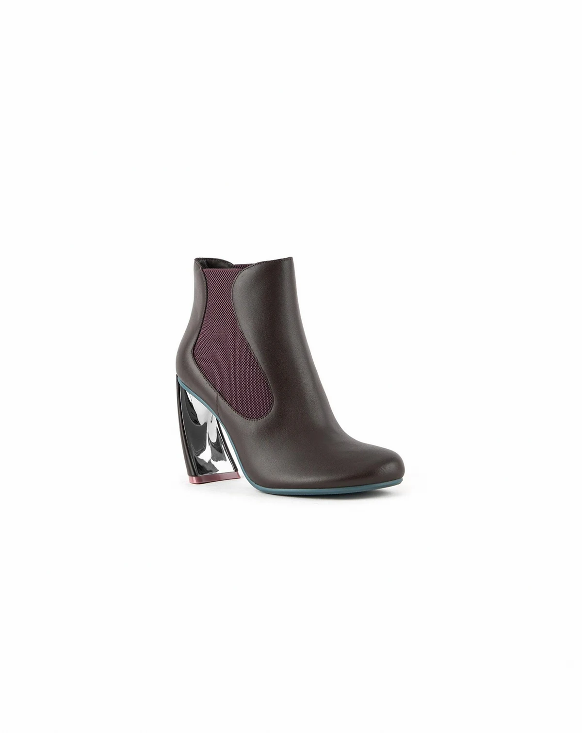 The Zuma Flow Hi is an abstract take on the classic Chelsea boot, featuring a sleek leather upper with organically shaped elastic side panels and a curved heel that flows seamlessly into the shoe's overall design, evoking a sense of movement through its silhouette.