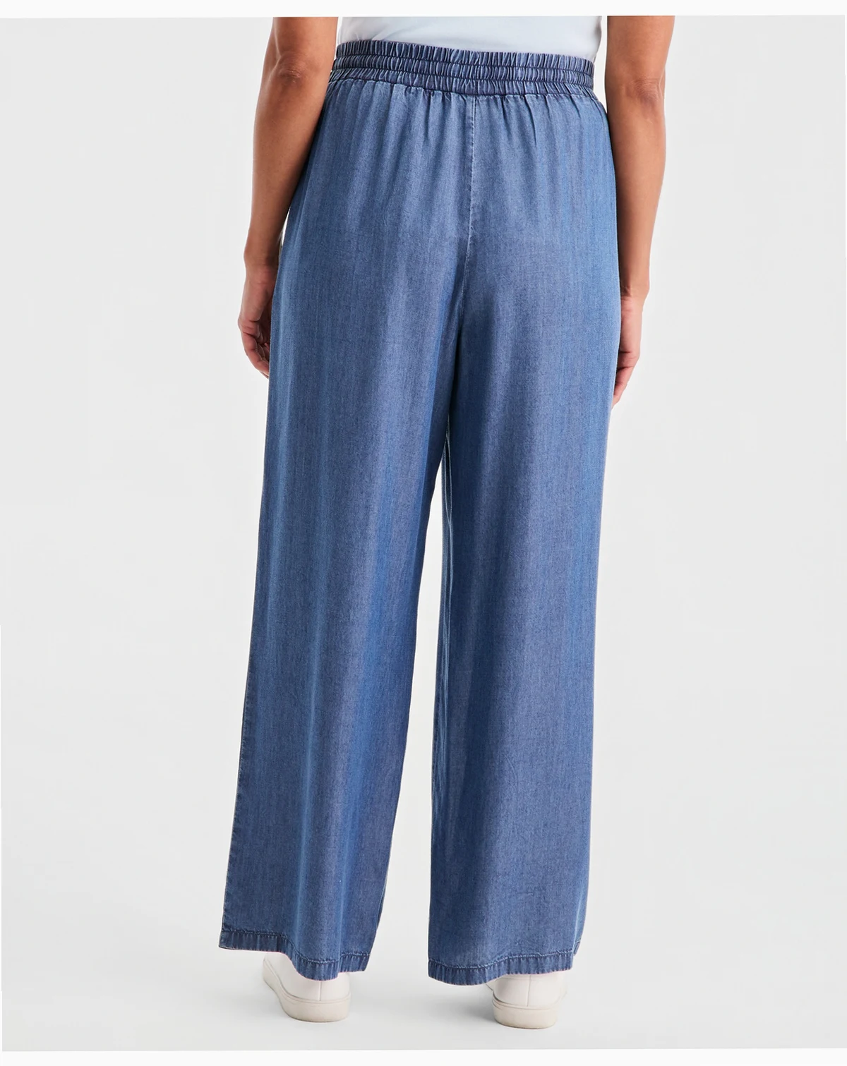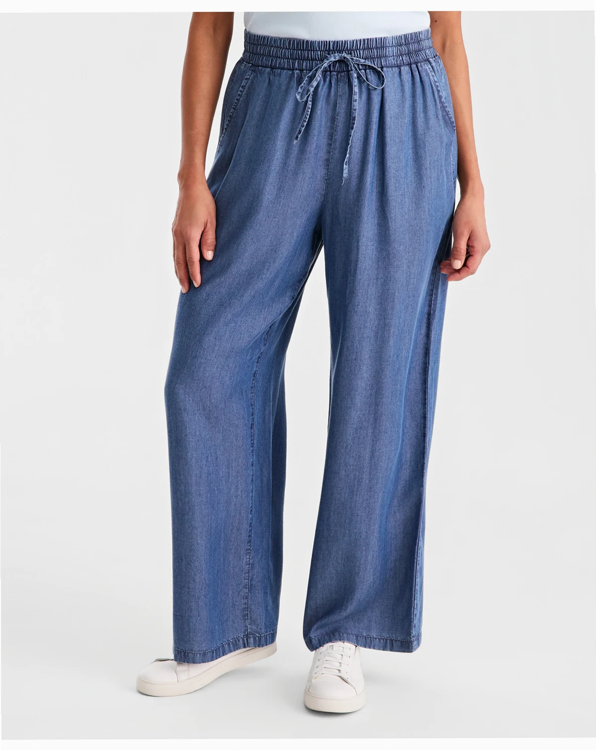 Effortlessly chic and comfortable, these chambray pants by Style & Co feature a wide-leg silhouette and a smooth pull-on waistband. Their lightweight, denim-inspired fabric offers a breezy, relaxed fit.
