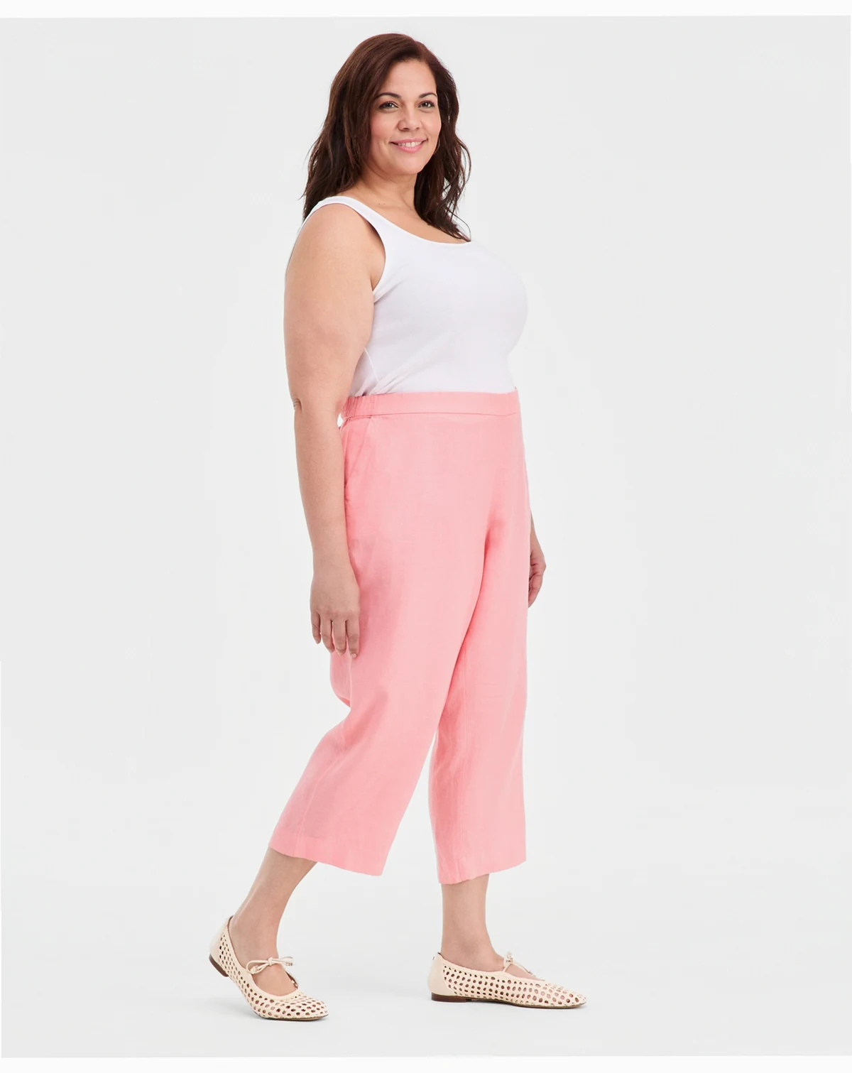Approx. model height is 5'10" and she is wearing a size 2X; Approx. inseam: 24"; Approx. rise: 11-1/2" at front; 20-1/2" at back; relaxed fit through hips and thighs