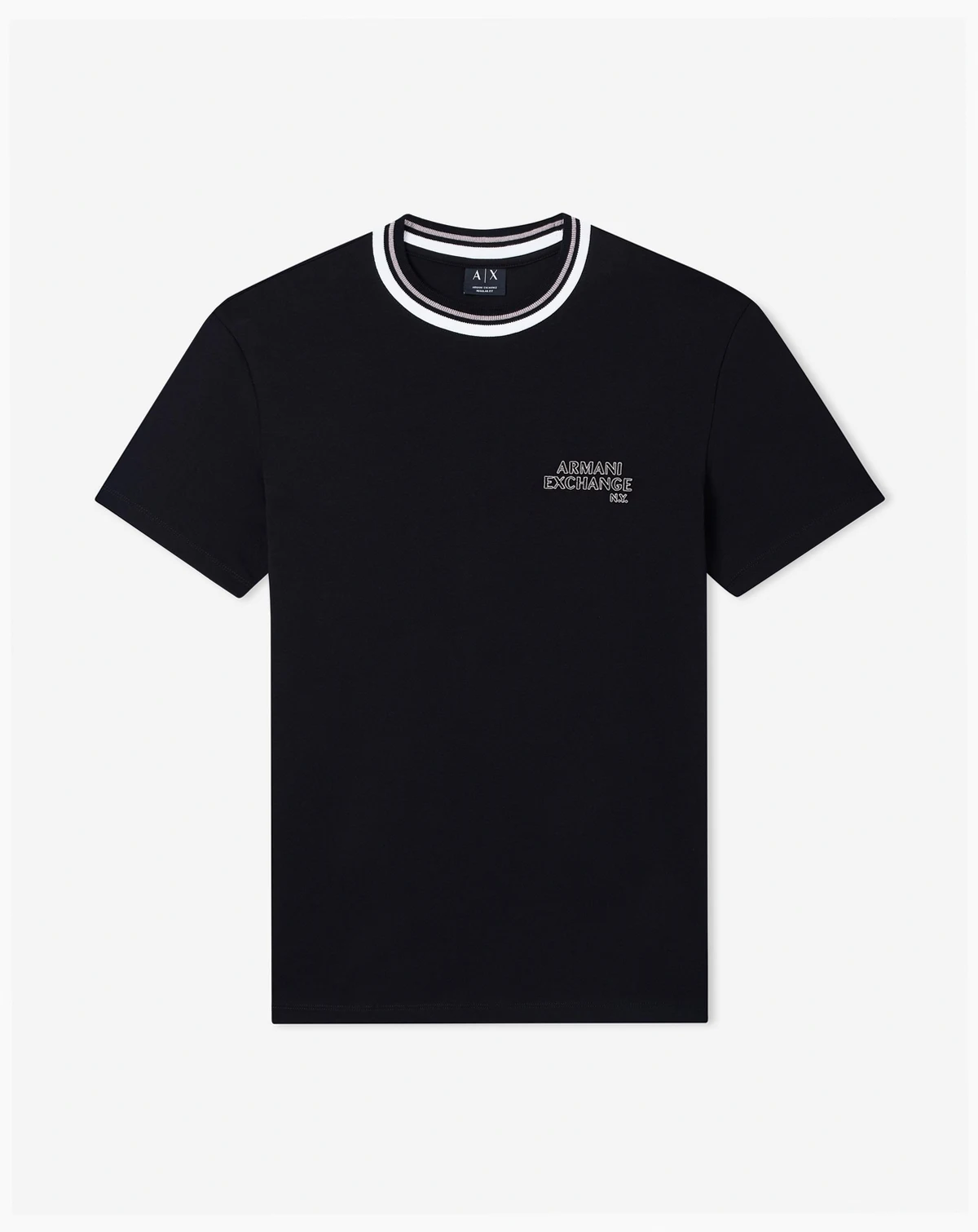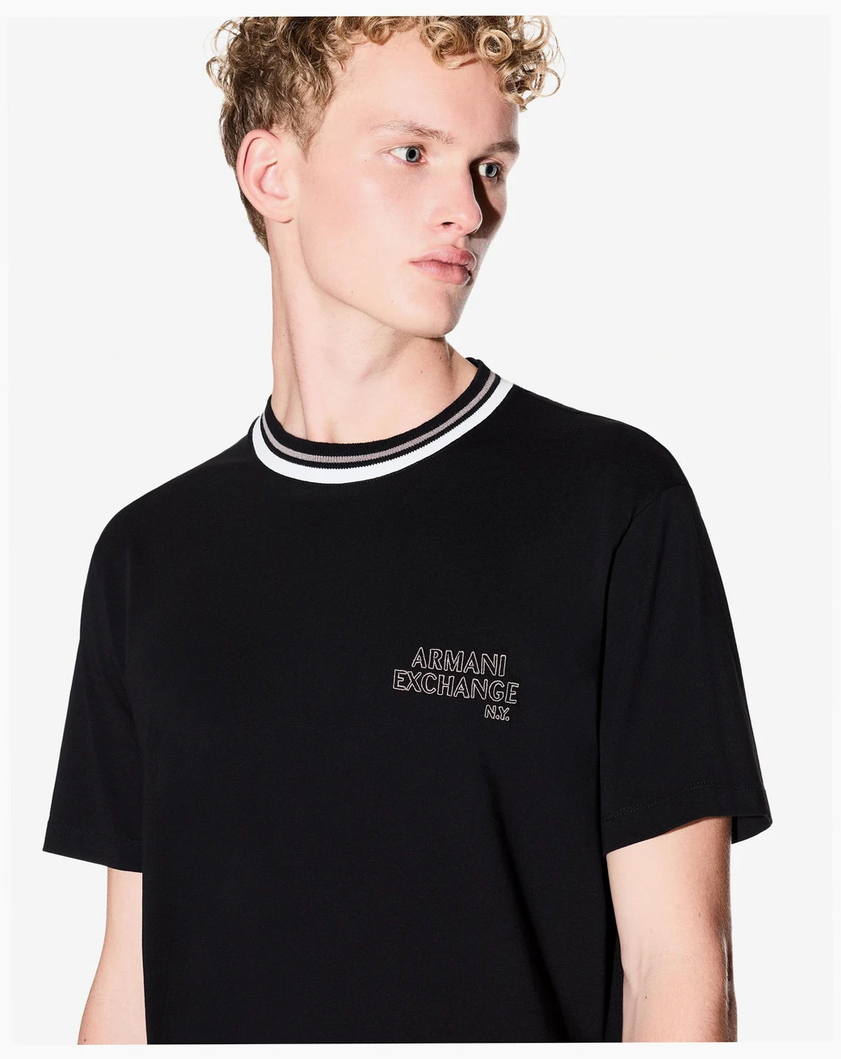 This T-shirt features a with contrast striped detailing and a subtle Armani Exchange chest logo. Crafted from soft, breathable fabric for all-day comfort and effortless style.