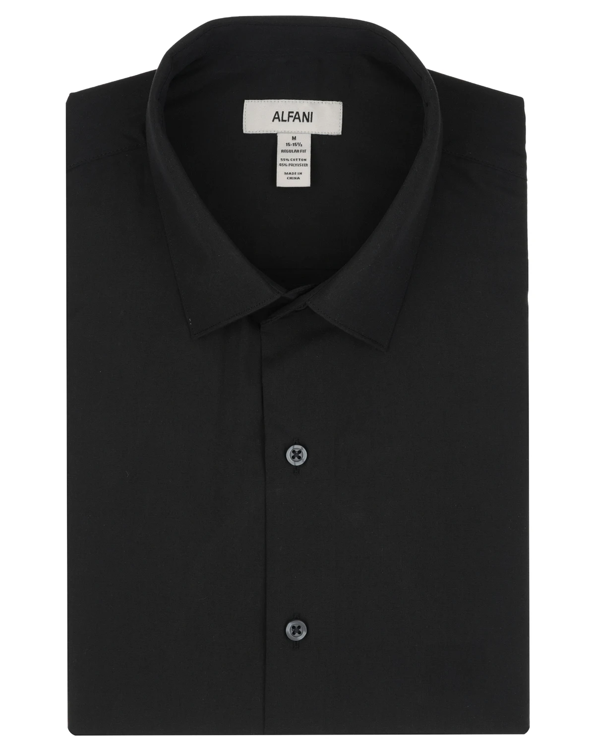 Elevate classic dressing in this Alfani dress shirt crafted with a regular fit and timeless spread collar. Mitred cuffs and easy-care construction ensure versatile, everyday sophistication.