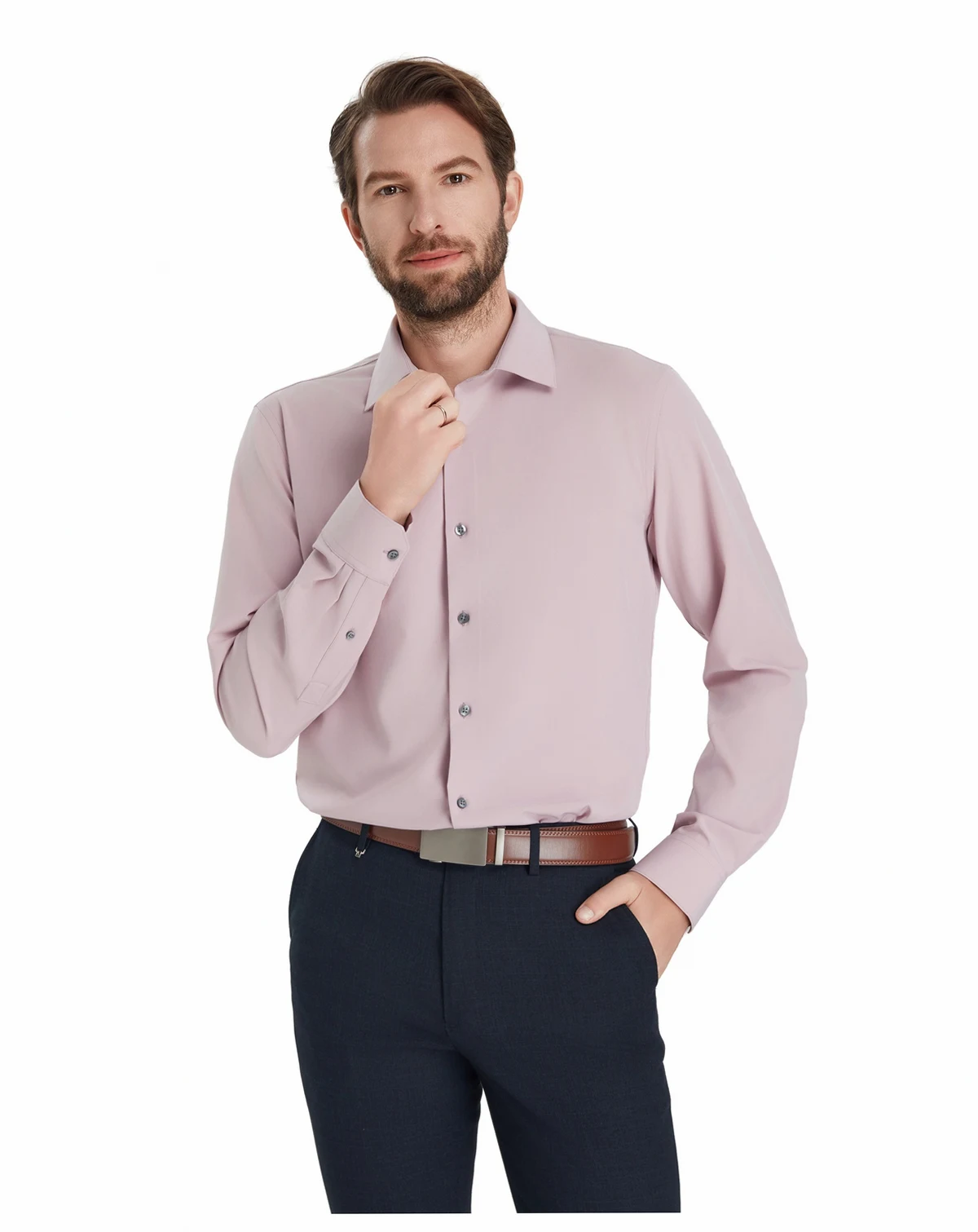 Make a sharp impression in this Alfani dress shirt styled with a spread collar, mitred cuffs, and a modern Slim-Fit. Easy-care construction and a solid finish complete the look with performance-ready polish.