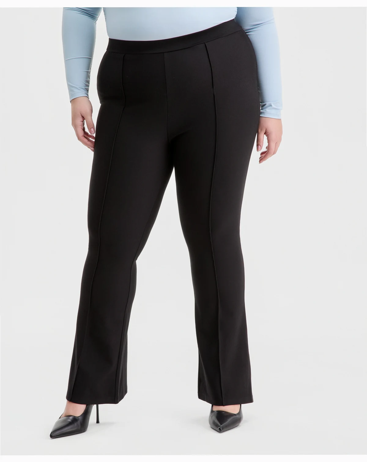 Approx. model height is 5'8" and she is wearing size 2X; Approx. inseam: 31-1/2"; High rise; approx. rise: 12-1/2"; leg opening: approx. 25"