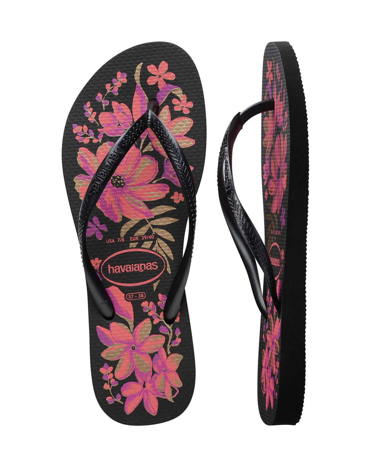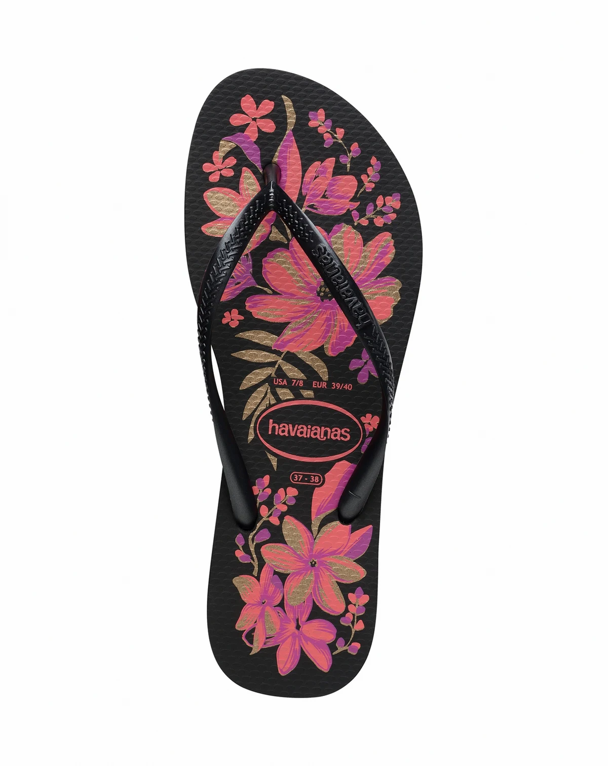 Delicate and romantic, the slim women's flip-flop is one of Havaianas' most classic models. With thinner straps and soles, the sandal also features a touch of sophistication with the metallic straps. Adorned with floral prints, the flip-flop is available in three new colors: choose the one that best suits you.
