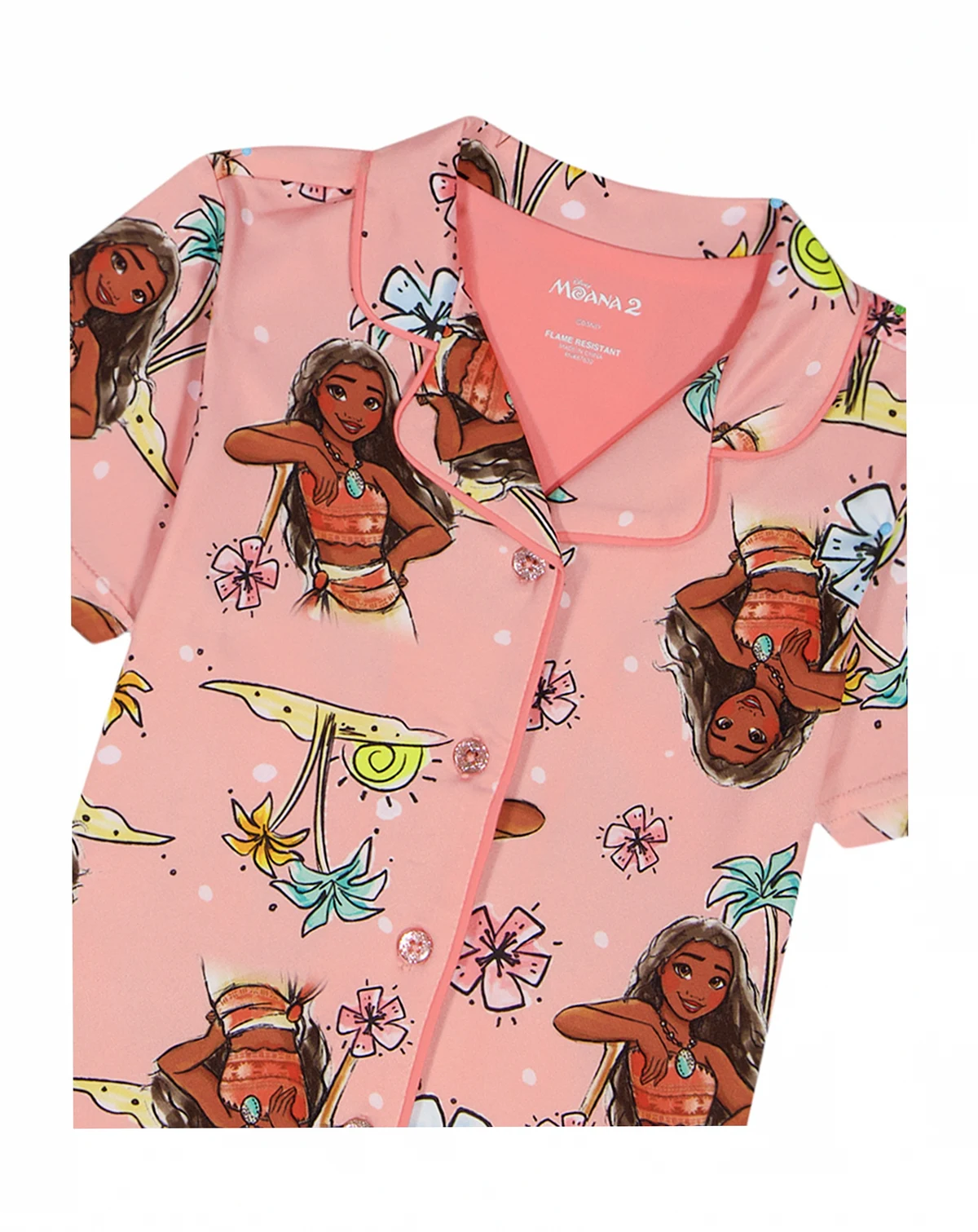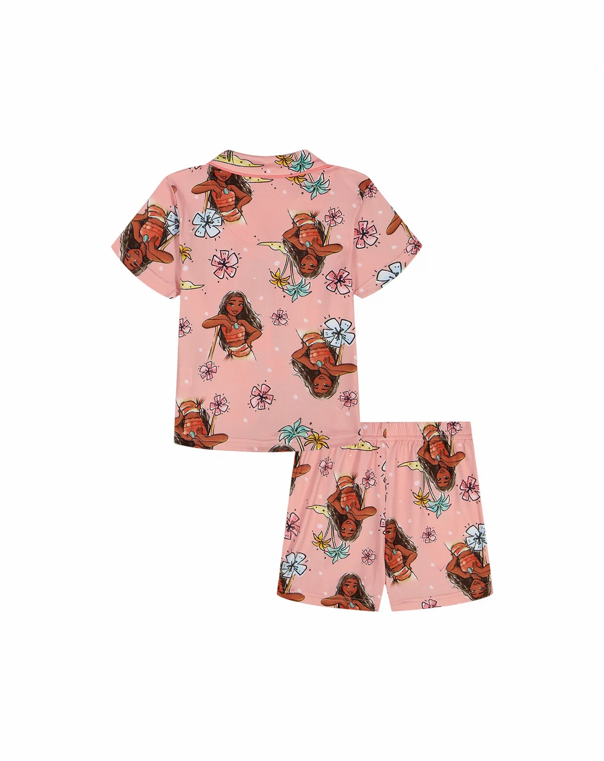 Bring a playful, island-ready look to sleepwear with this Moana pajama set, featuring a notch-collar, button-down short-sleeve top covered in an all-over Moana print. A pair of loose, matching shorts with an elastic waistband keeps the set light and easy for relaxed wear.