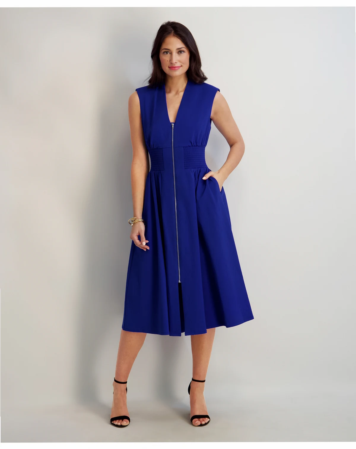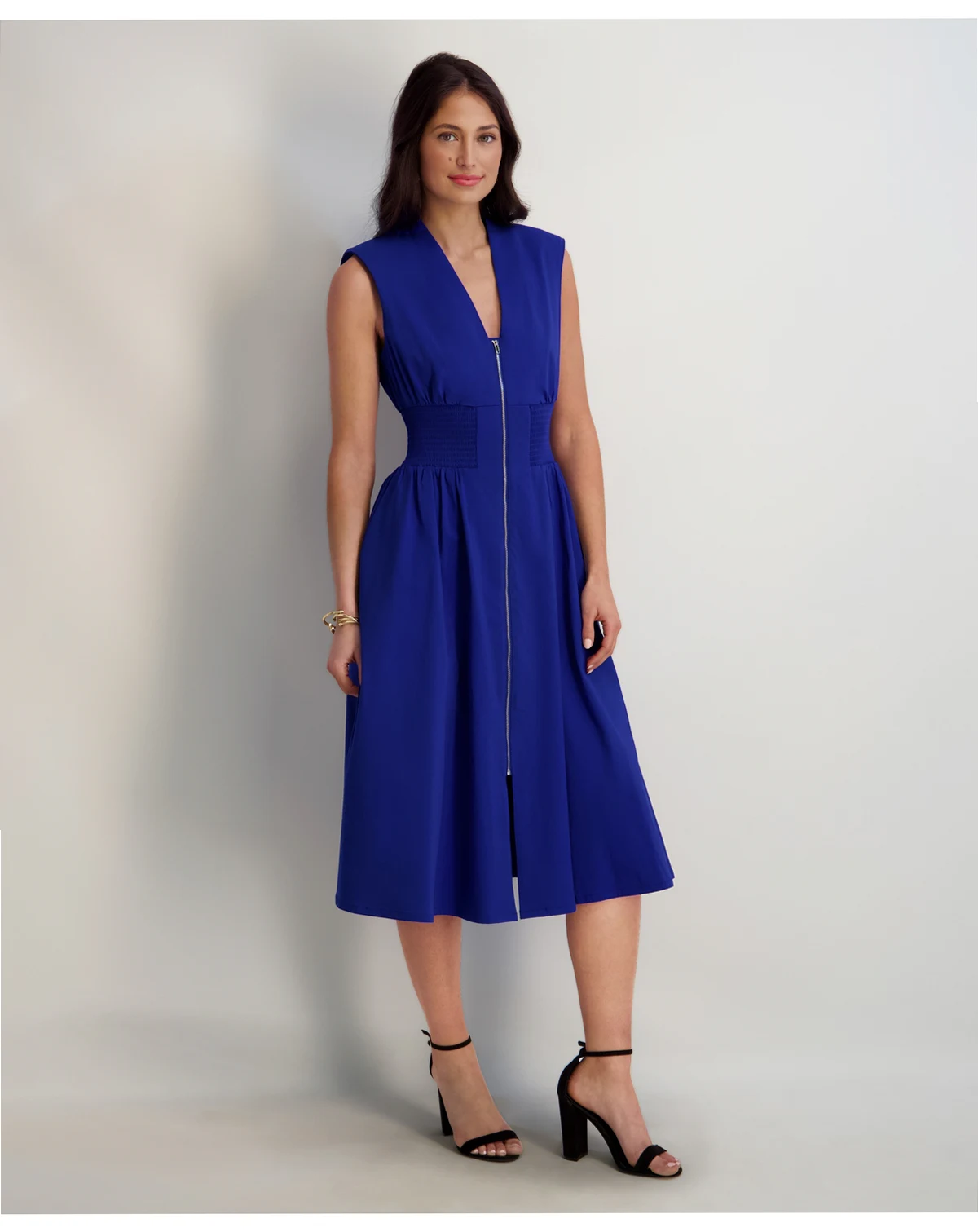 Shell: rayon/nylon/spandex; lining: polyester; IMPORTANT NOTE: This item arrives with a return tag attached and instructions for removal. Once the tag is removed from the dress, this item cannot be returned.