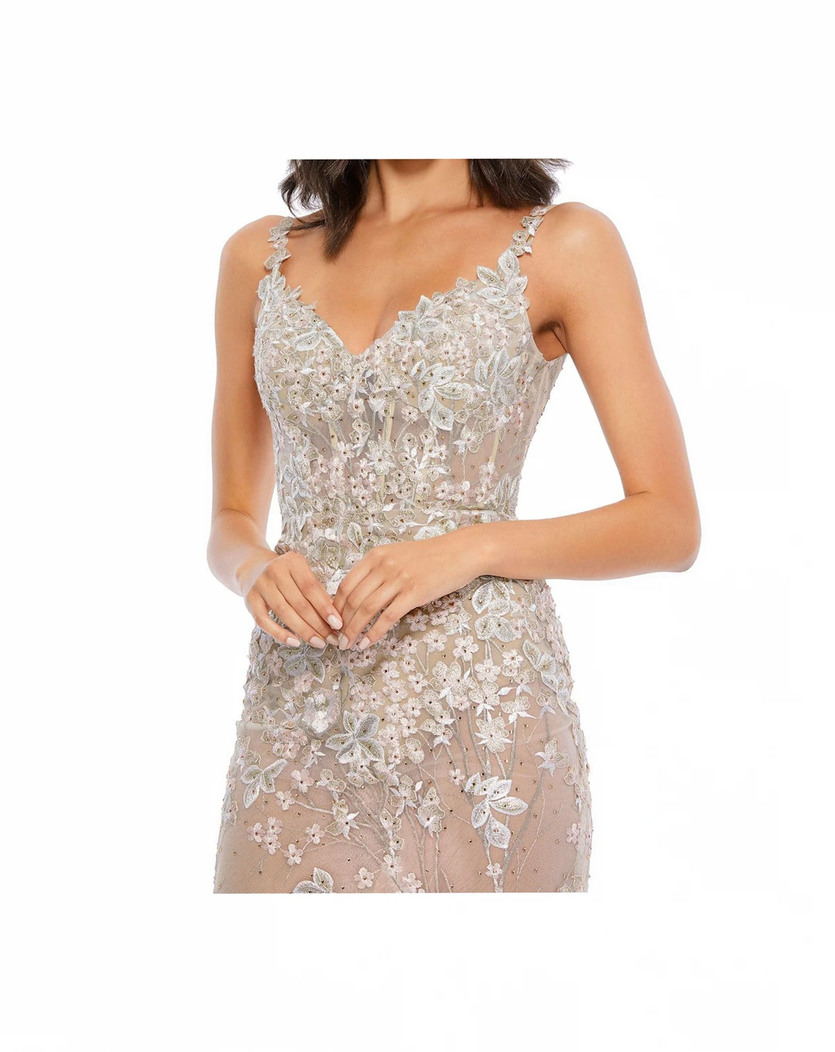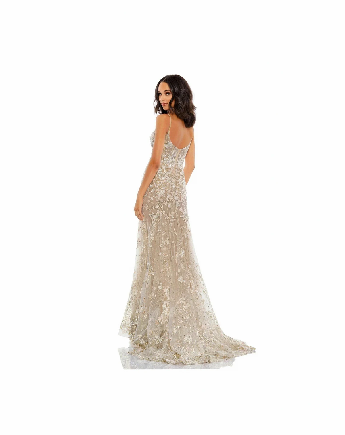 At everything from weddings to pageants to prom. Meticulously crafted V-neckline, the incredible dress is embroidered with romantic florals sleeves and dotted with faceted faux gems for allover sparkle. The elegance factor is sculpting boning at the bodice and a formal sweep train.