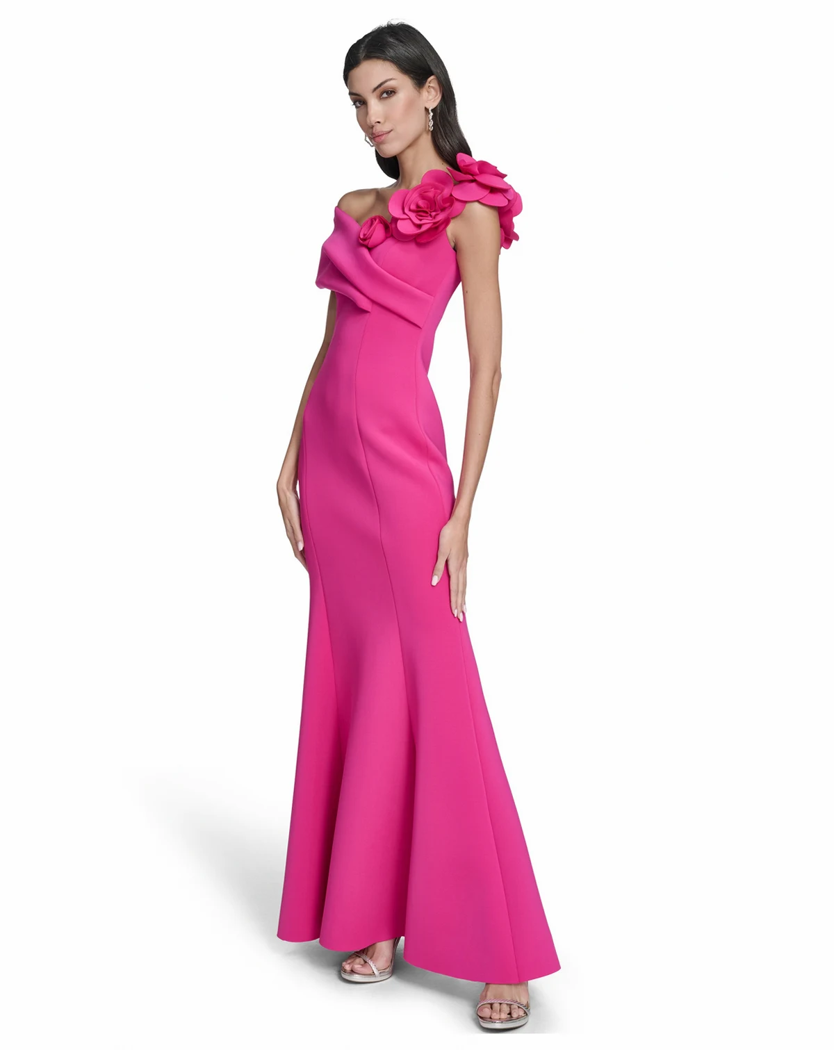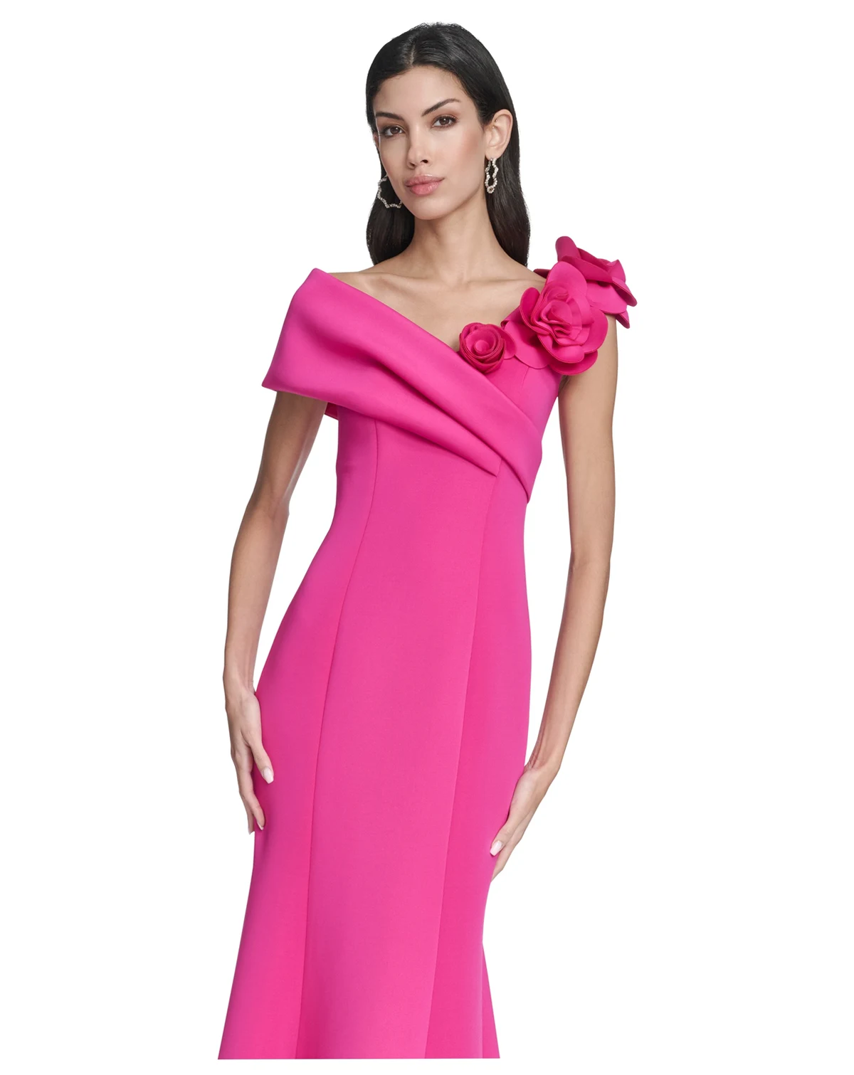 Command the room in this Eliza J off-the-shoulder gown. The flowing design and elegant neckline provide a timeless look for special occasions.