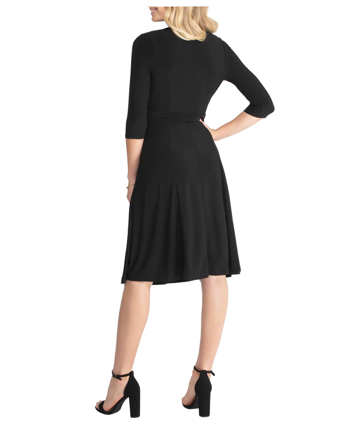 No wardrobe should be without a classic knee length wrap dress. The Essential embodies everything a true wrap should be with slimming princess seams, 3/4 length sleeves, and fluid knee-length skirt. Perfect for work, cocktail, and classic wedding guest. Available in women's regular and plus sizes.