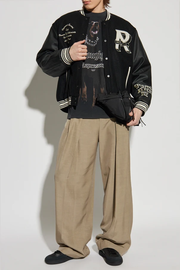 A subtle touch of distinction is added by a small "REPRESENT" label at the hem, affirming its prestigious origin. The black color, with a washed finish, adds depth and timeless elegance to this piece, making it a standout addition to any wardrobe.