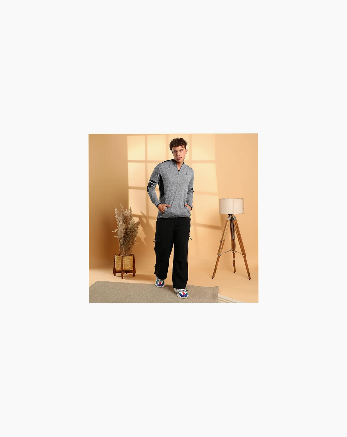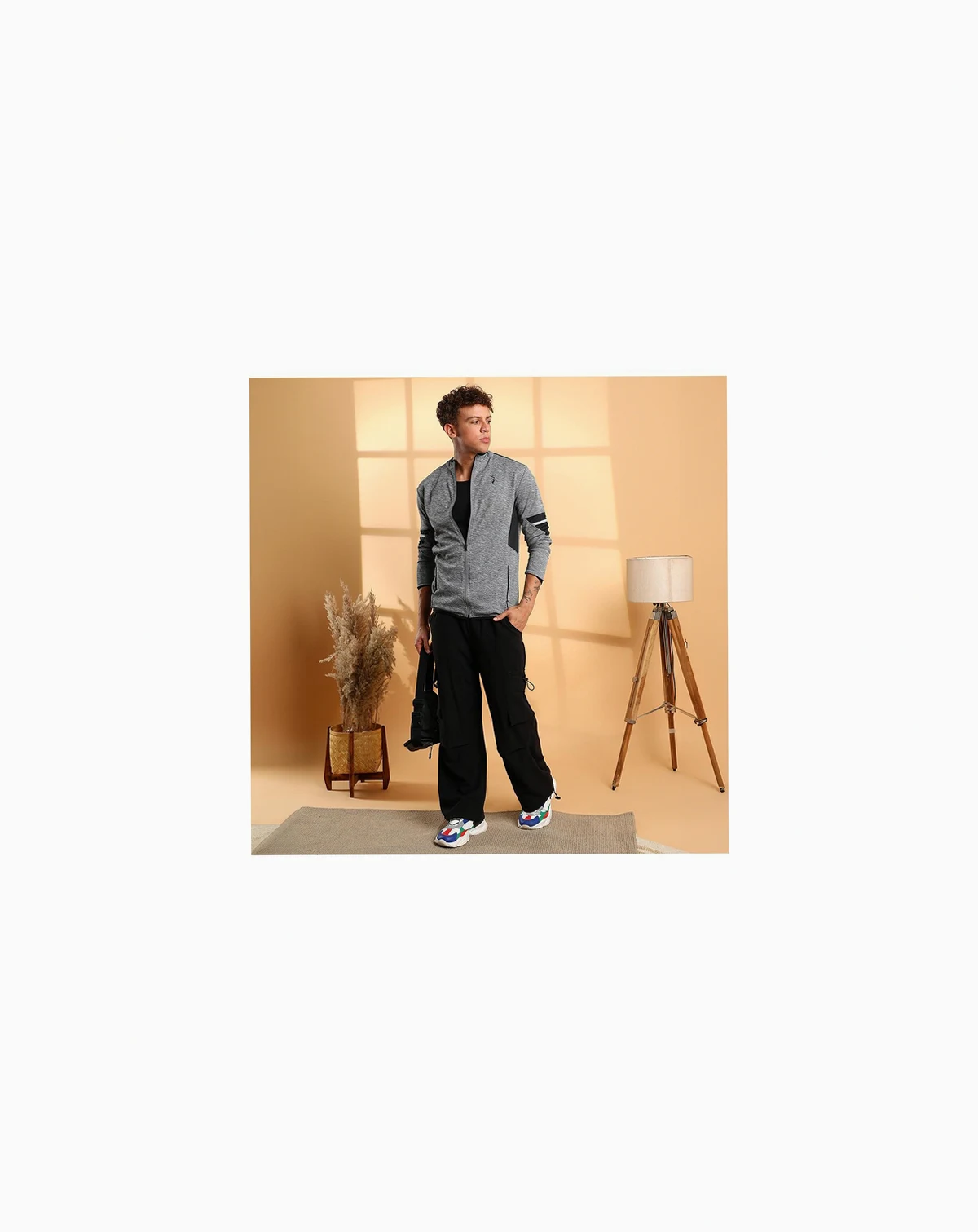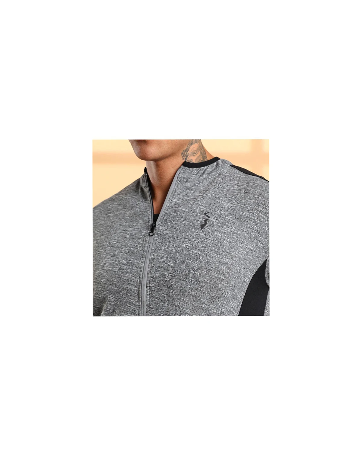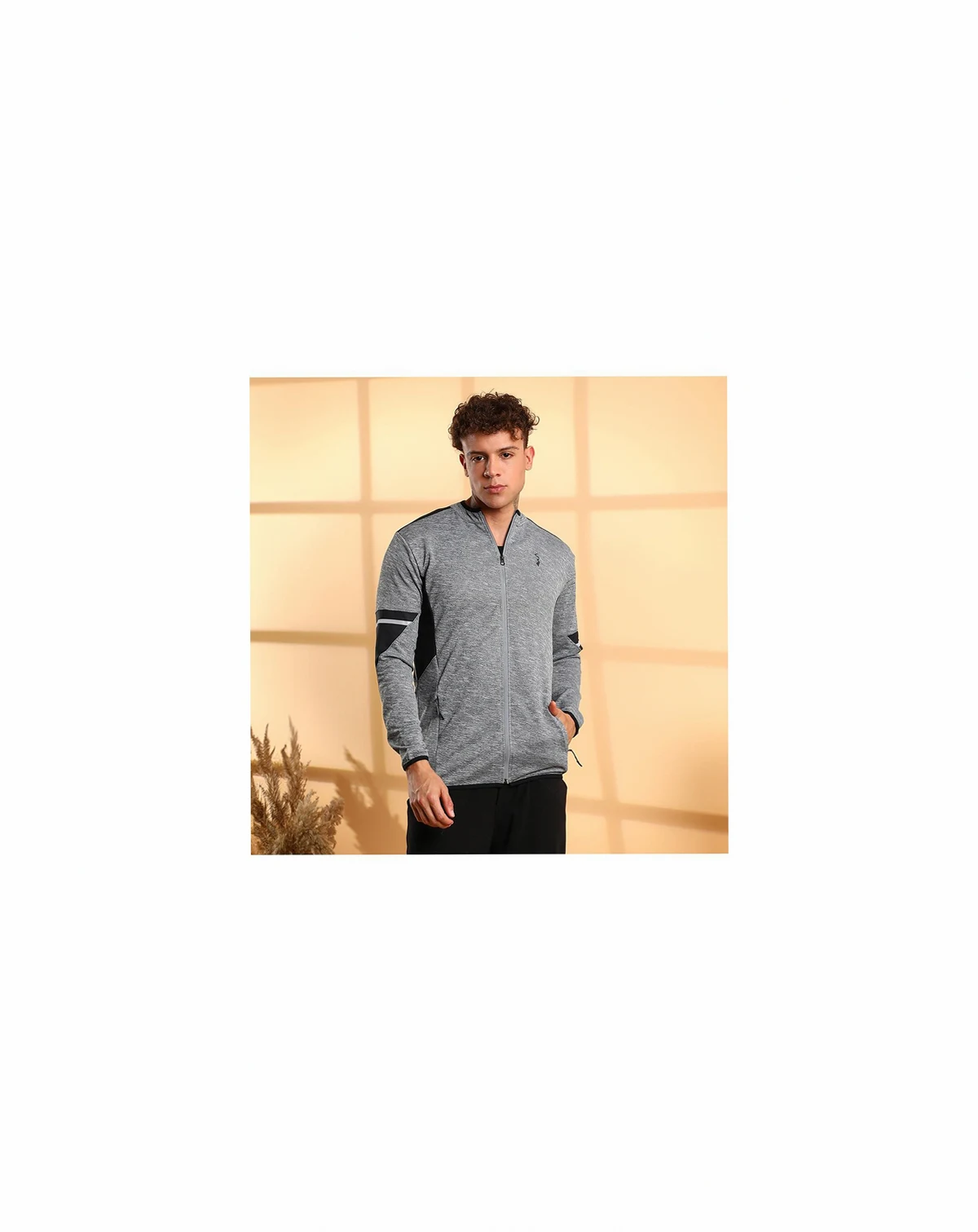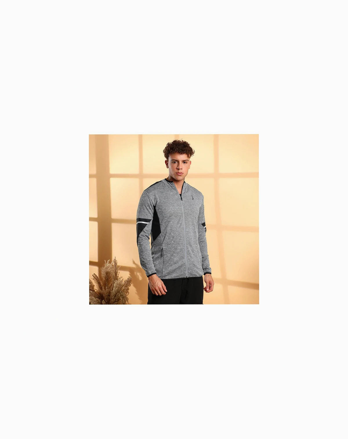 Men's Grey Heathered Activewear Jacket With Contrast Detail