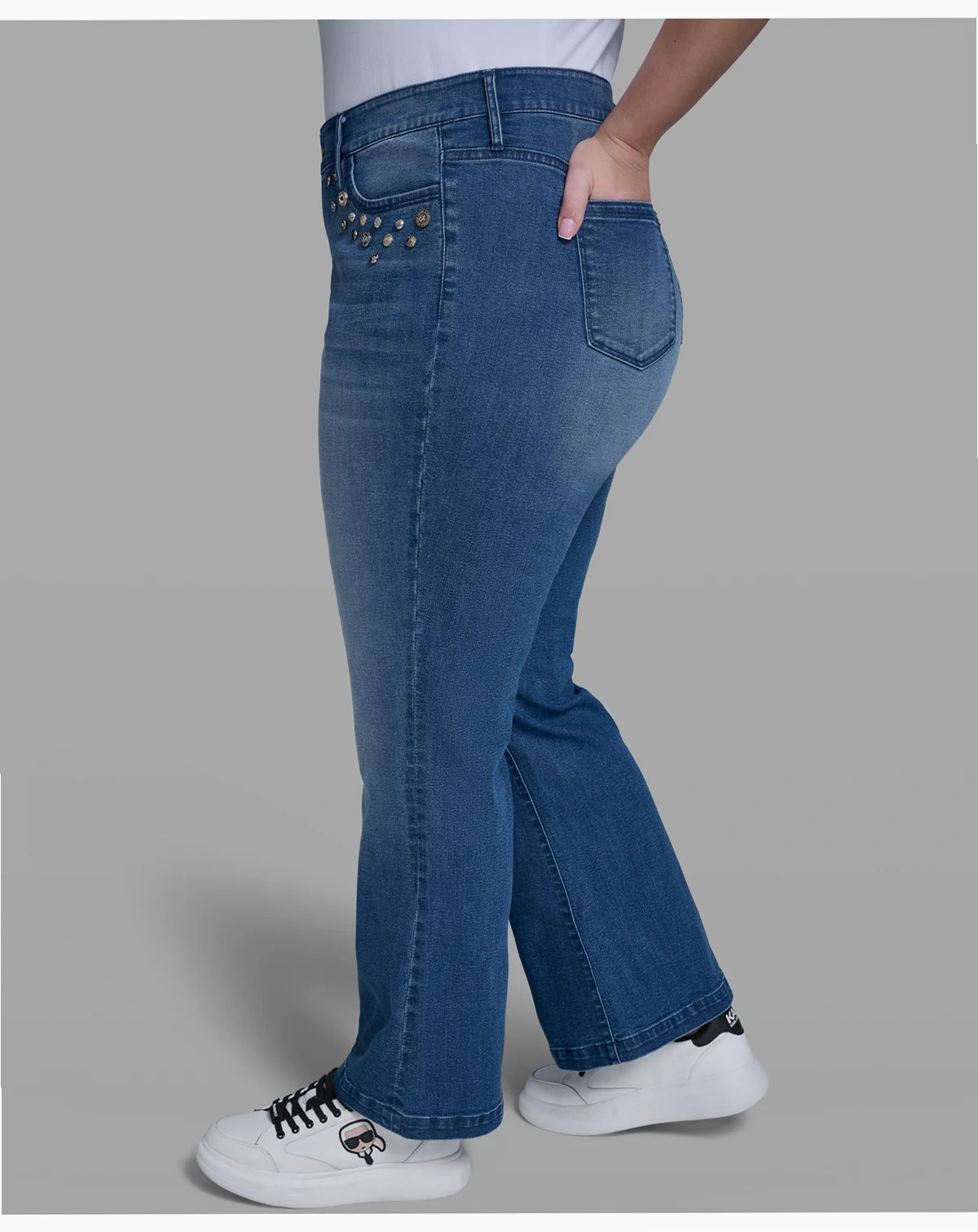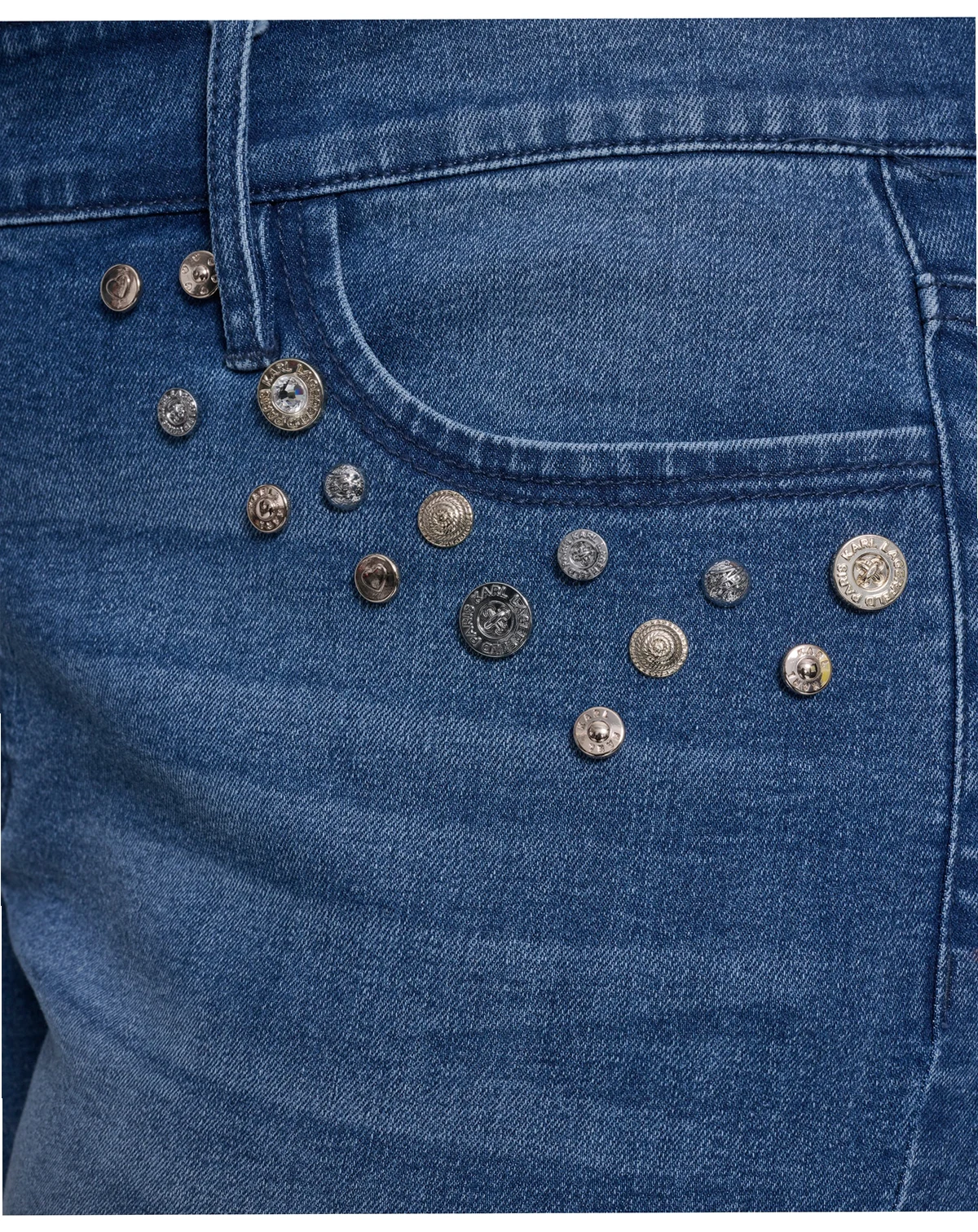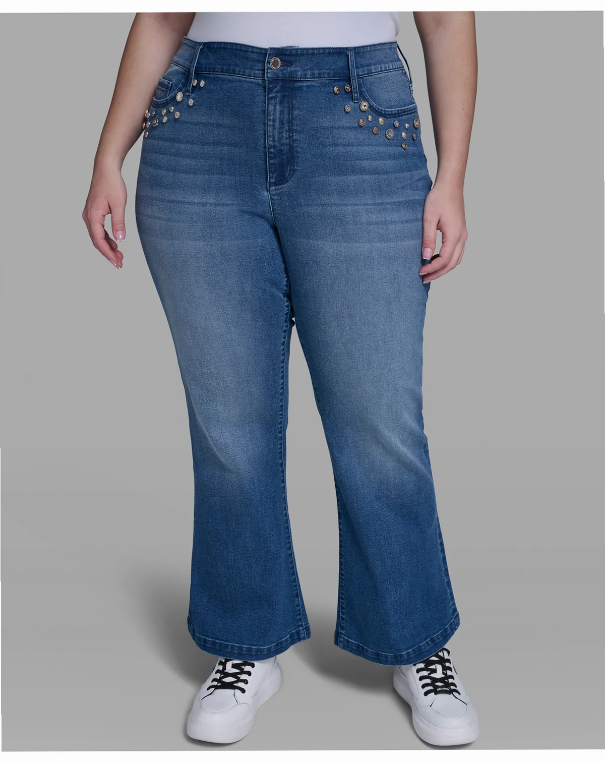 Bring refined attitude to everyday denim with these KARL LAGERFELD PARIS jeans, accented by distinctive multi-coin pocket detailing for a signature finish. A straight-leg, ankle-length cut with a zip-and-button closure delivers polished, modern wearability.