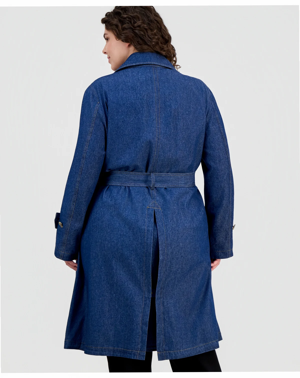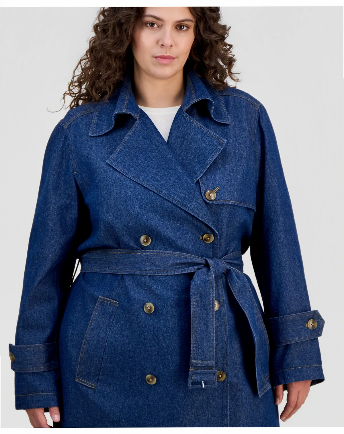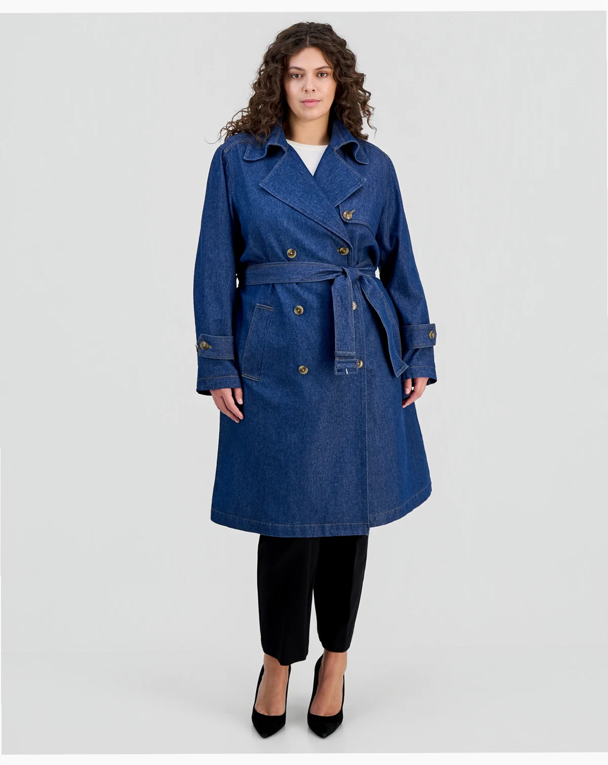 Plus Size Belted Denim Trench Coat