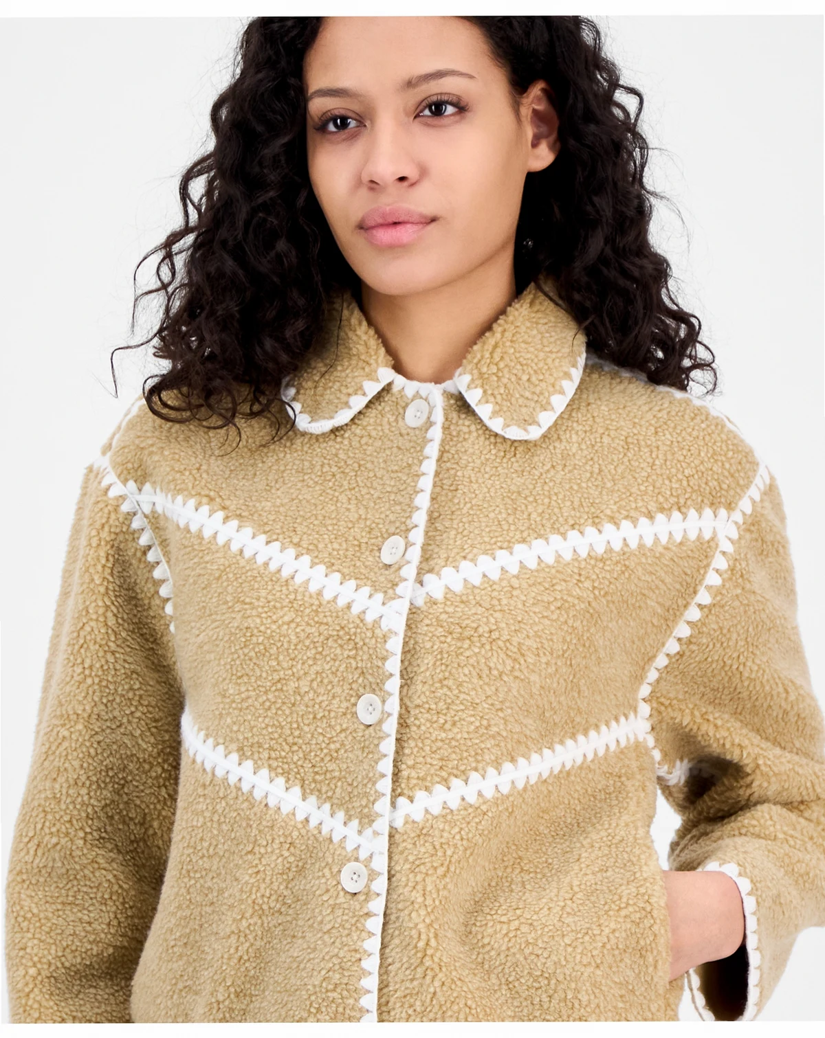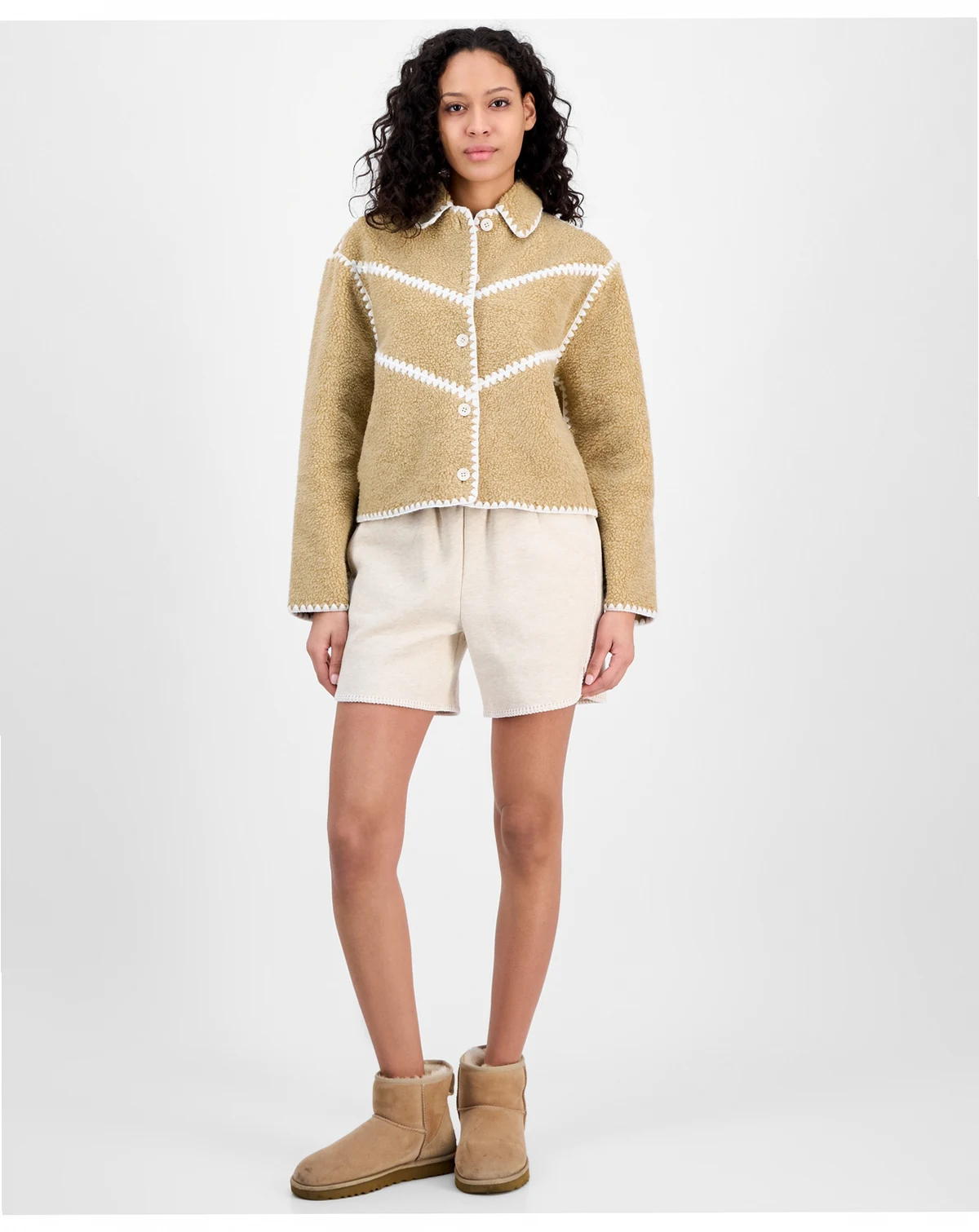 Cozy goes chic with the Ellison UGGfluff Shell Jacket from UGG®. Crafted from plush fleece and lined with soft cotton jersey, this jacket features elevated scalloped trims and a rounded collar.