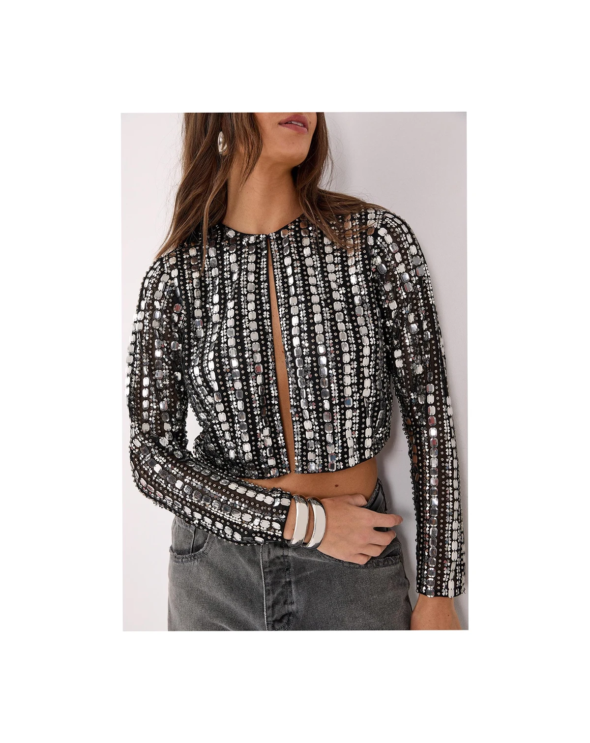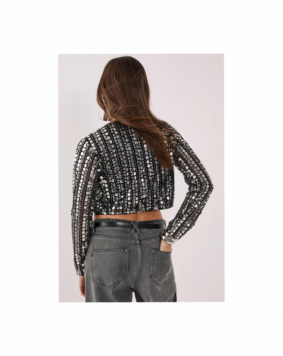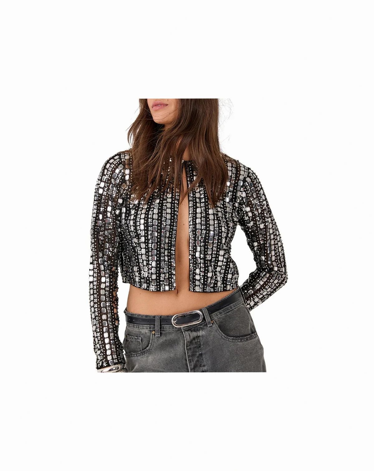 Striking beaded embellishment in vertical stripe pattern for maximum impact. Cropped silhouette with long sleeves for contemporary styling. Front opening design creates a bold statement look. Fully lined for comfort and structure. Pairs perfectly with the matching beaded skirt for a coordinated ensemble. Make an unforgettable entrance in this show-stopping beaded jacket from nasty gal. The dazzling vertical beadwork catches and reflects light with every movement, ensuring all eyes are on you.