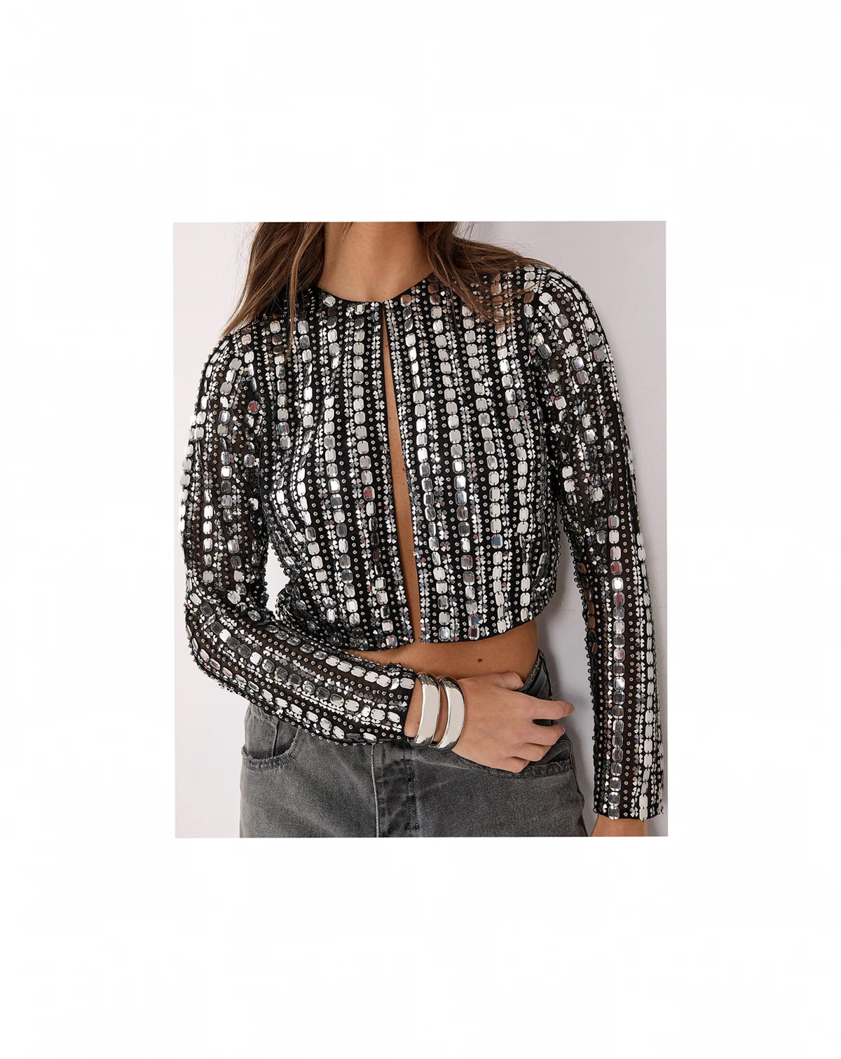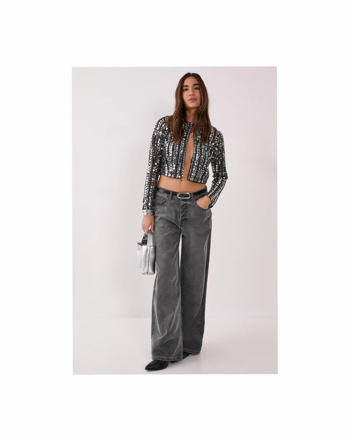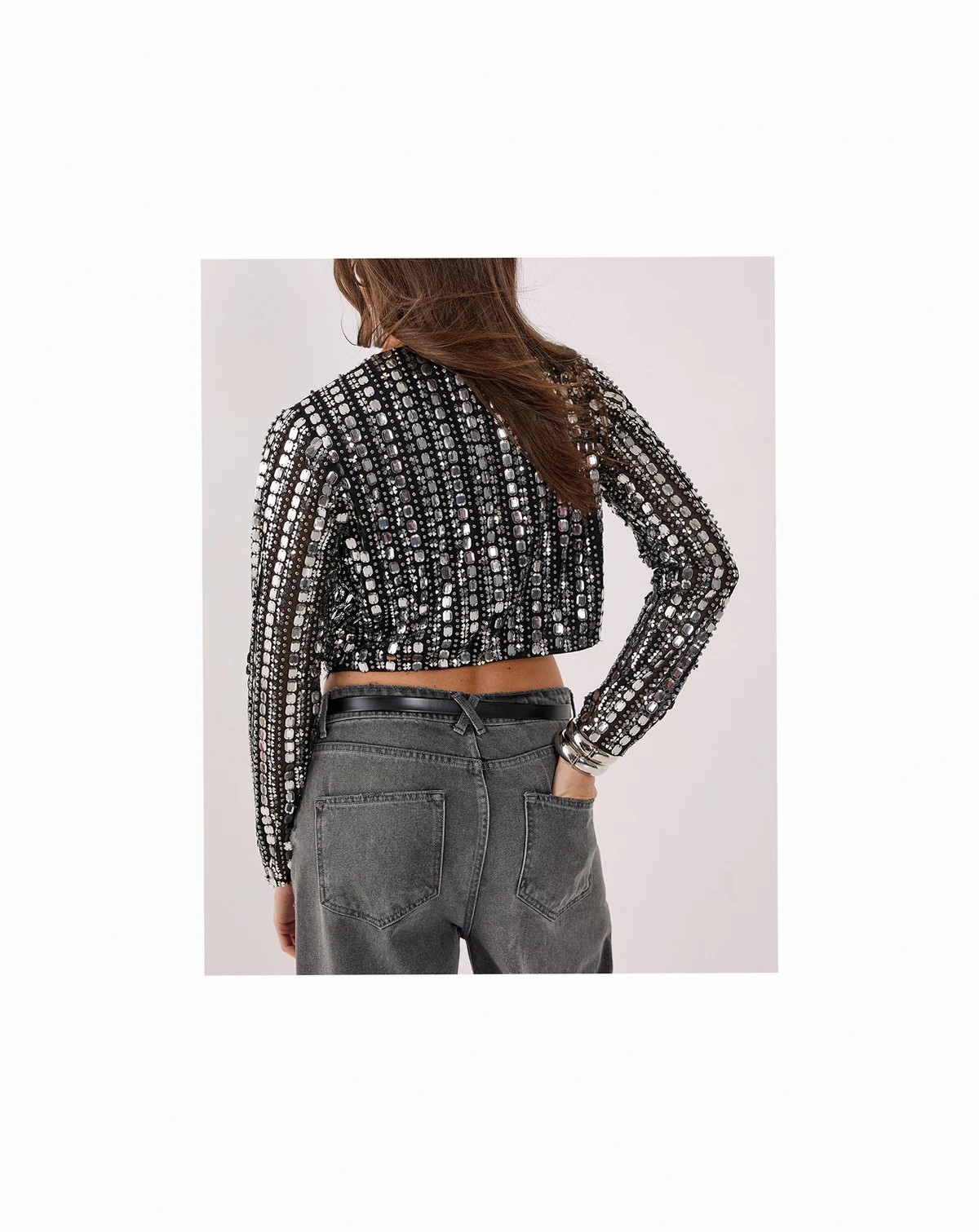 Striking beaded embellishment in vertical stripe pattern for maximum impact. Cropped silhouette with long sleeves for contemporary styling. Front opening design creates a bold statement look. Fully lined for comfort and structure. Pairs perfectly with the matching beaded skirt for a coordinated ensemble. Make an unforgettable entrance in this show-stopping beaded jacket from nasty gal. The dazzling vertical beadwork catches and reflects light with every movement, ensuring all eyes are on you.