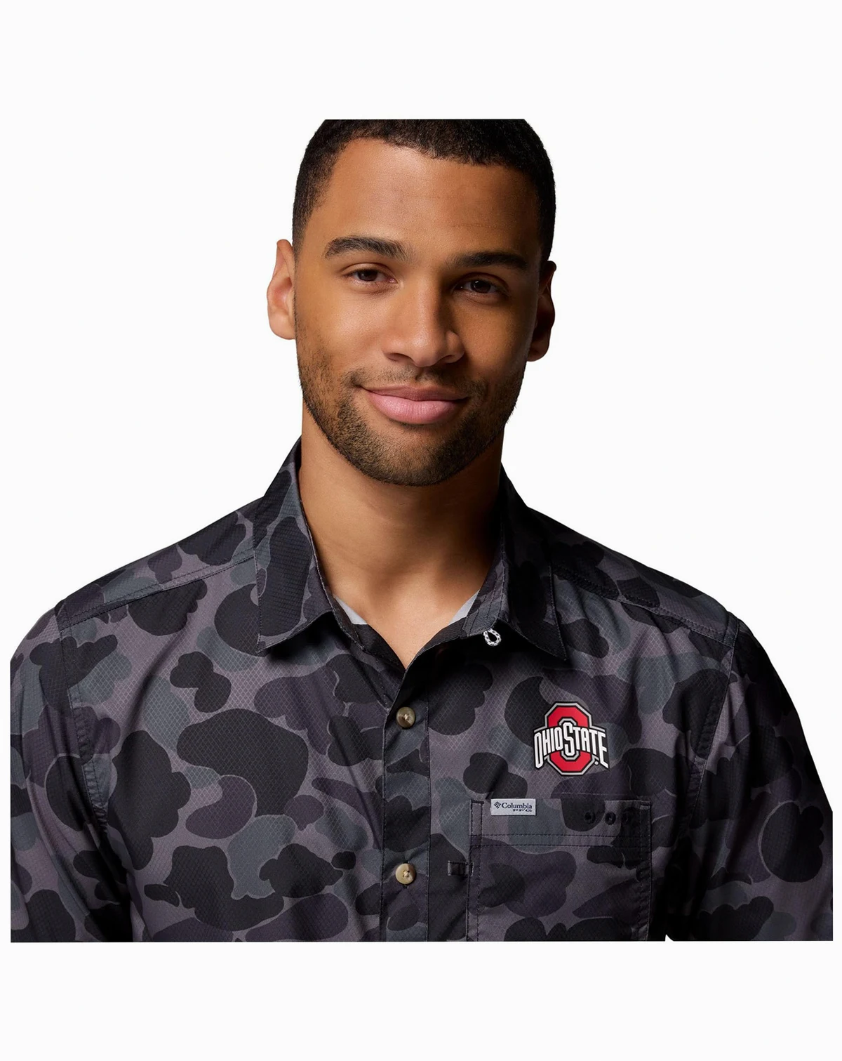 Stay comfortable and stylish when you support the Ohio State Buckeyes with this Super Slack Tide Omni-Wick Button-Up Shirt from Columbia. It features Omni-Wick technology to keep you dry and comfortable and Omni-Shade UPF 40 to guard against sun damage. Plus, the heat-sealed graphics let everyone know you're cheering for the Ohio State Buckeyes.
