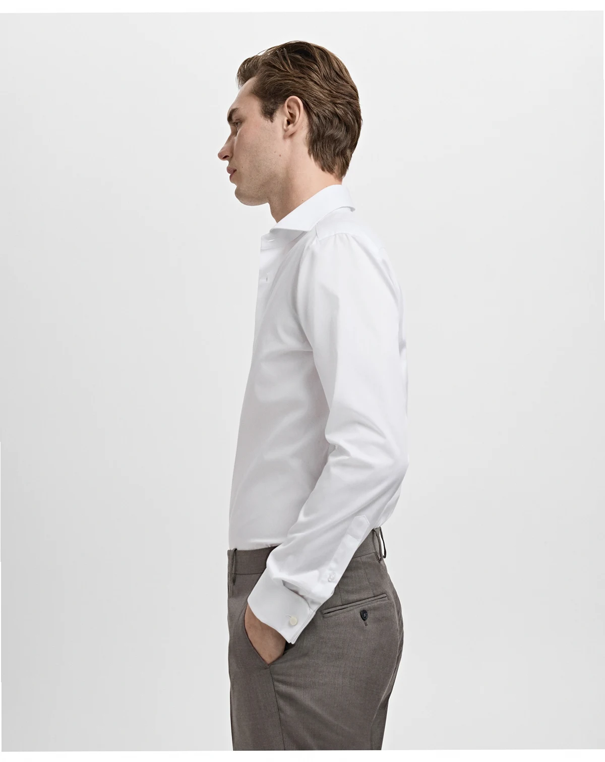 Approx. model height is 6' 1" and he is wearing a size M or EU 42 or US 32; Slim fit; See size chart above. Mango is based on EU sizing and has a slimmer fit than that of US sizing