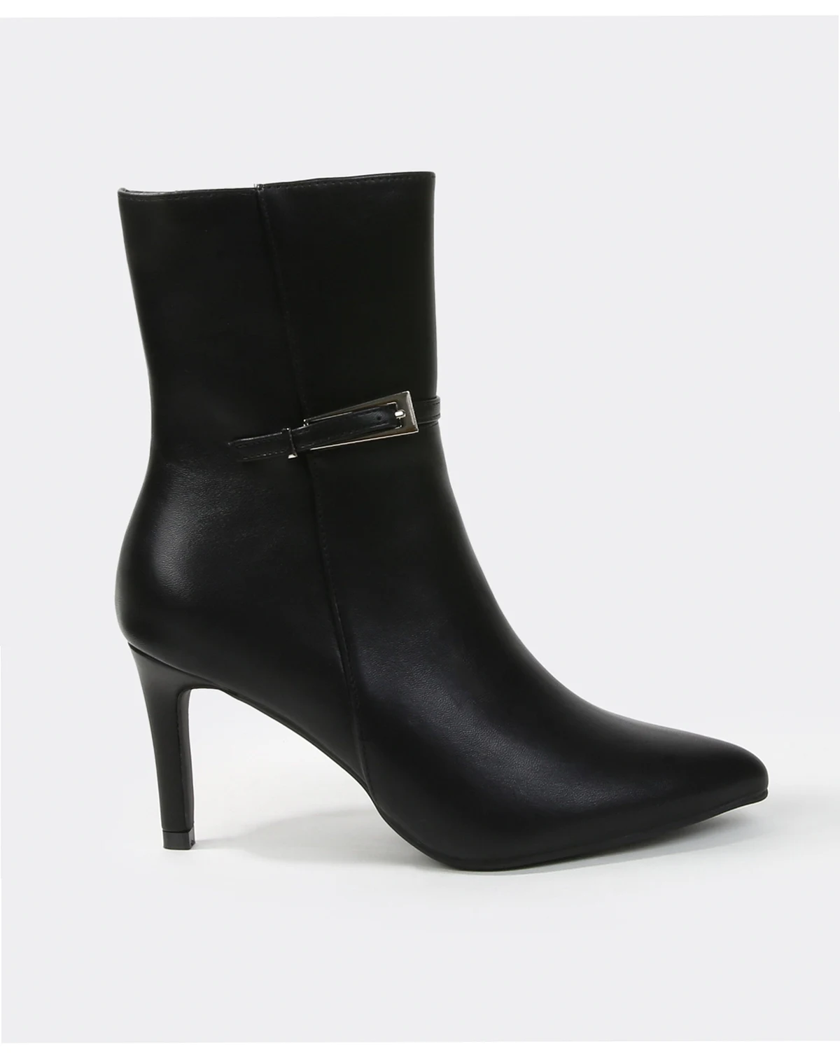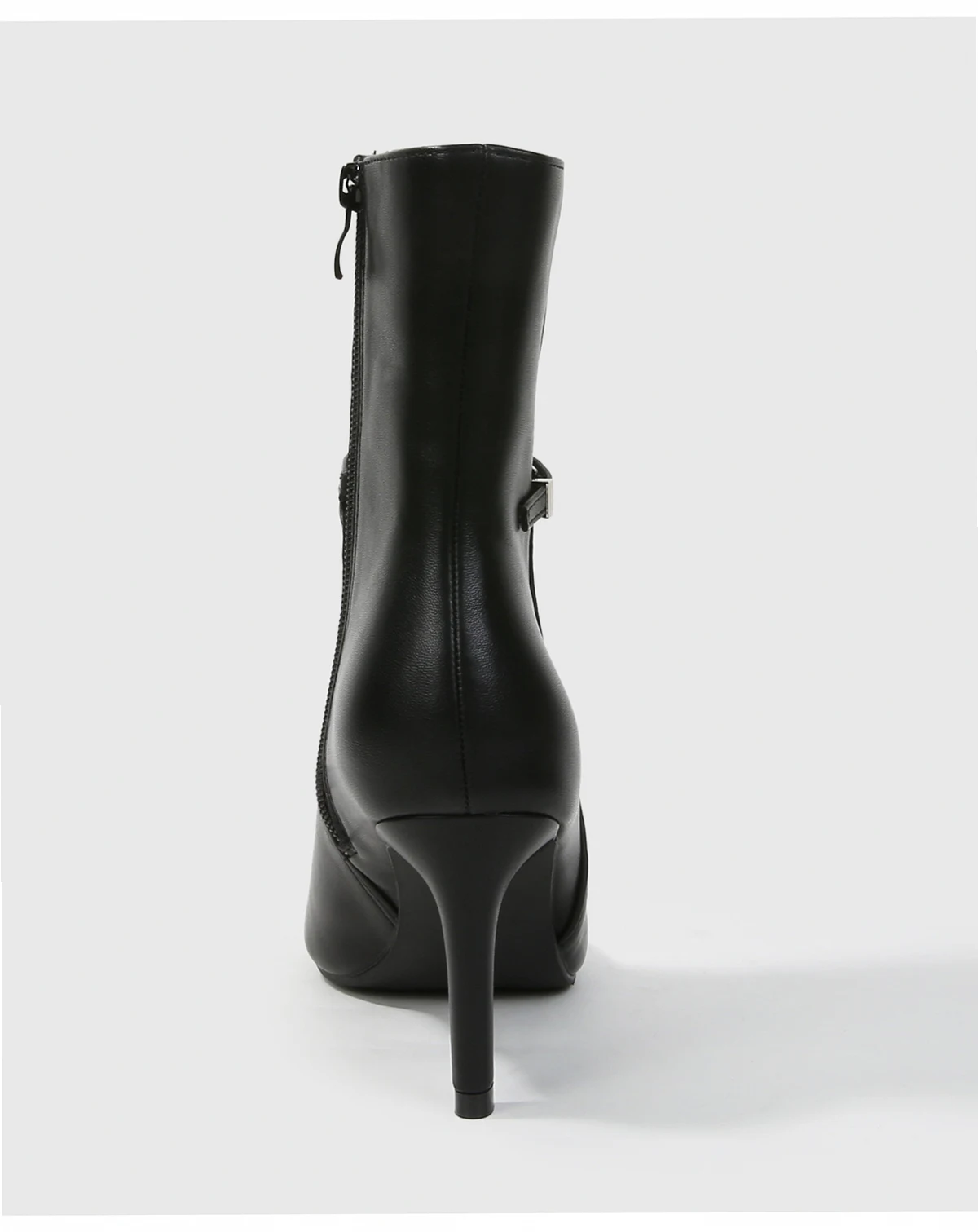 Kairi pointed-toe ankle boots feature an elongated buckle on a non-functional strap. The minimalist and clean design on a slim heel offer timeless elegance.