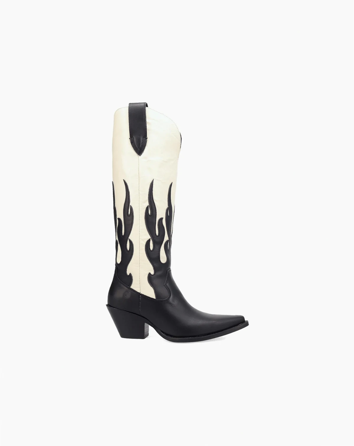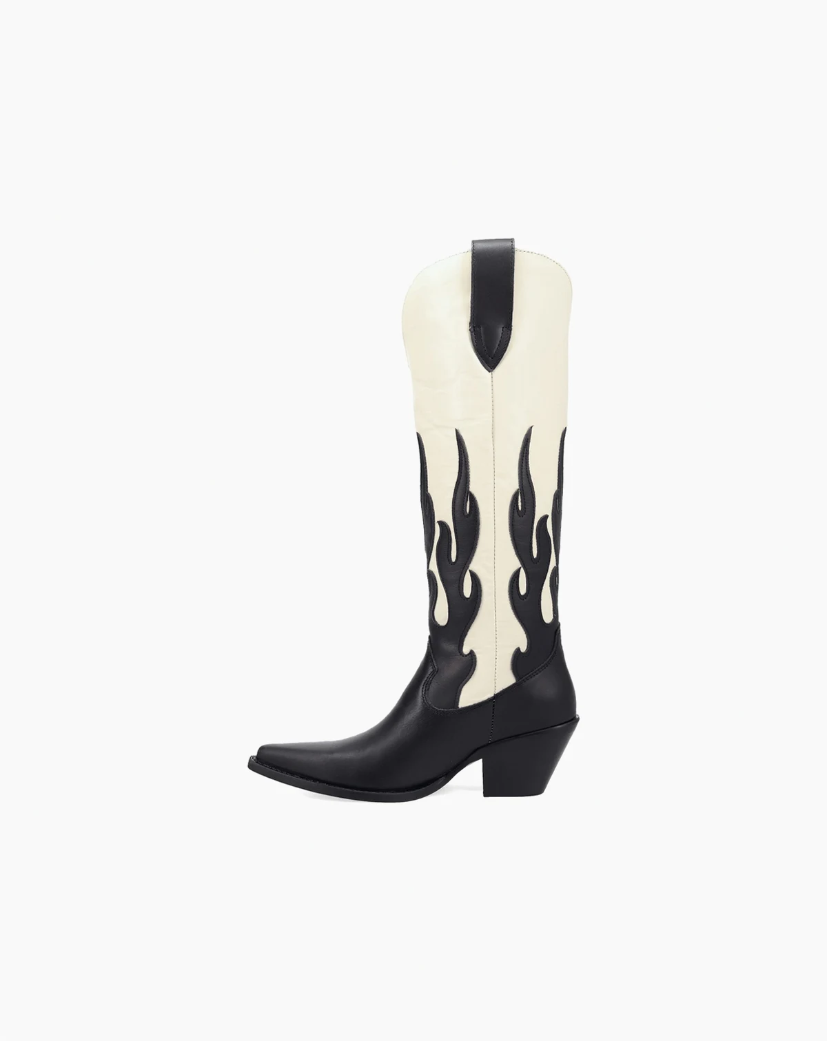 Turn up the heat in the Burnin' Love boot. With bold curves, flame-inspired stitching, and a silhouette that sizzles, this style is made for the spotlight. Whether you're dancing 'til sunrise or just bringing the fire to your everyday fit, this boot is all passion, no apologies. Light it up and let your wild side walk tall.