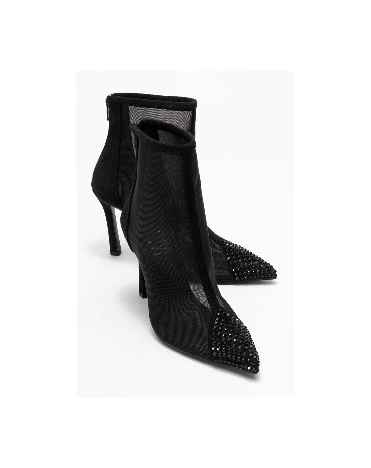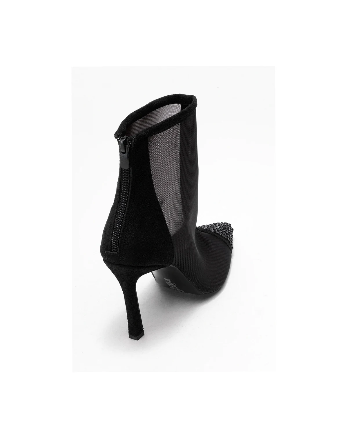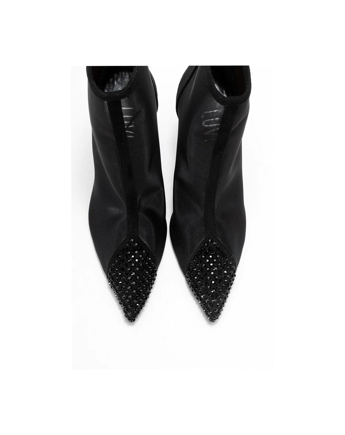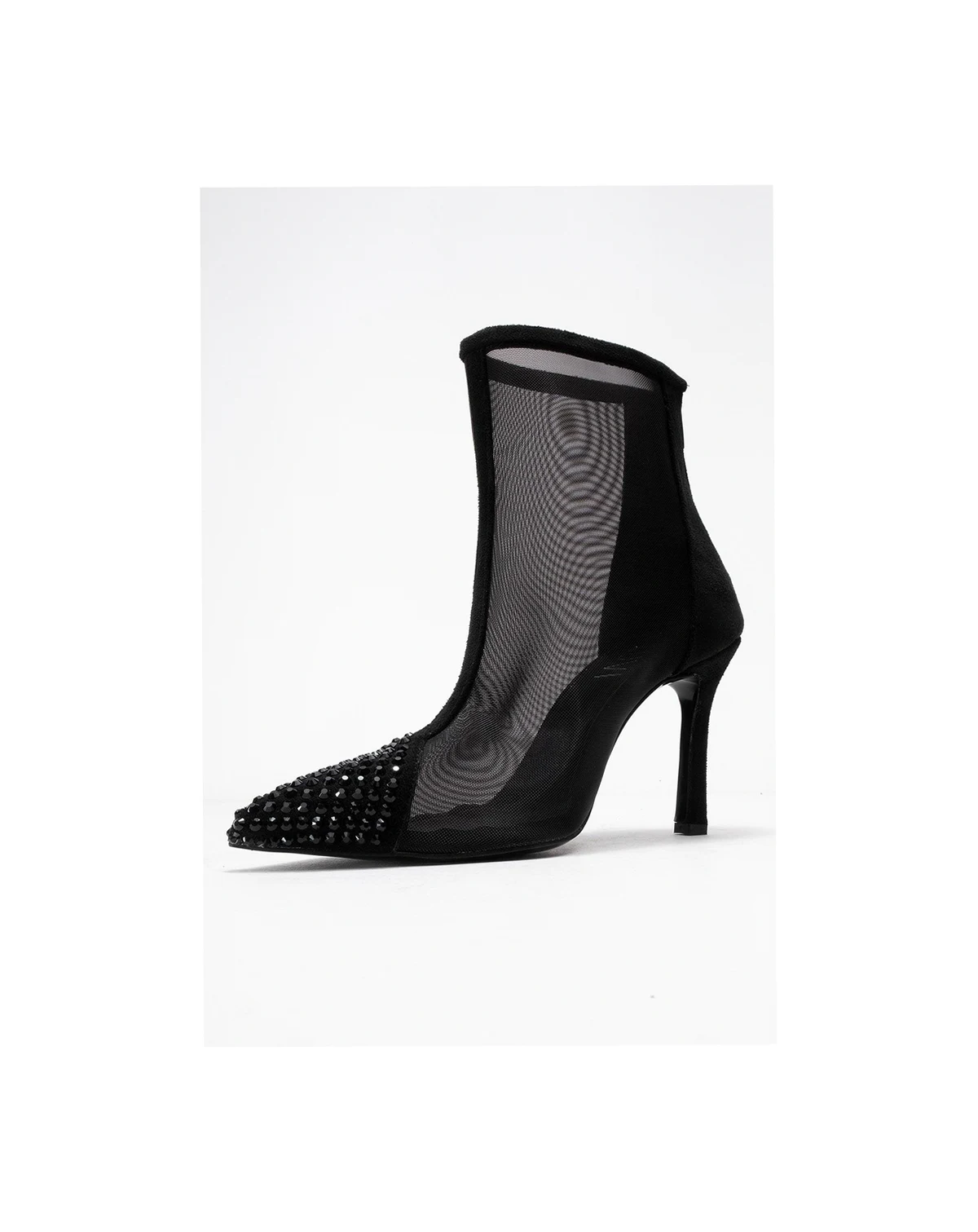 An eye-catching boot that plays on sheer mesh and sparkling embellishments for a show-stopping finish