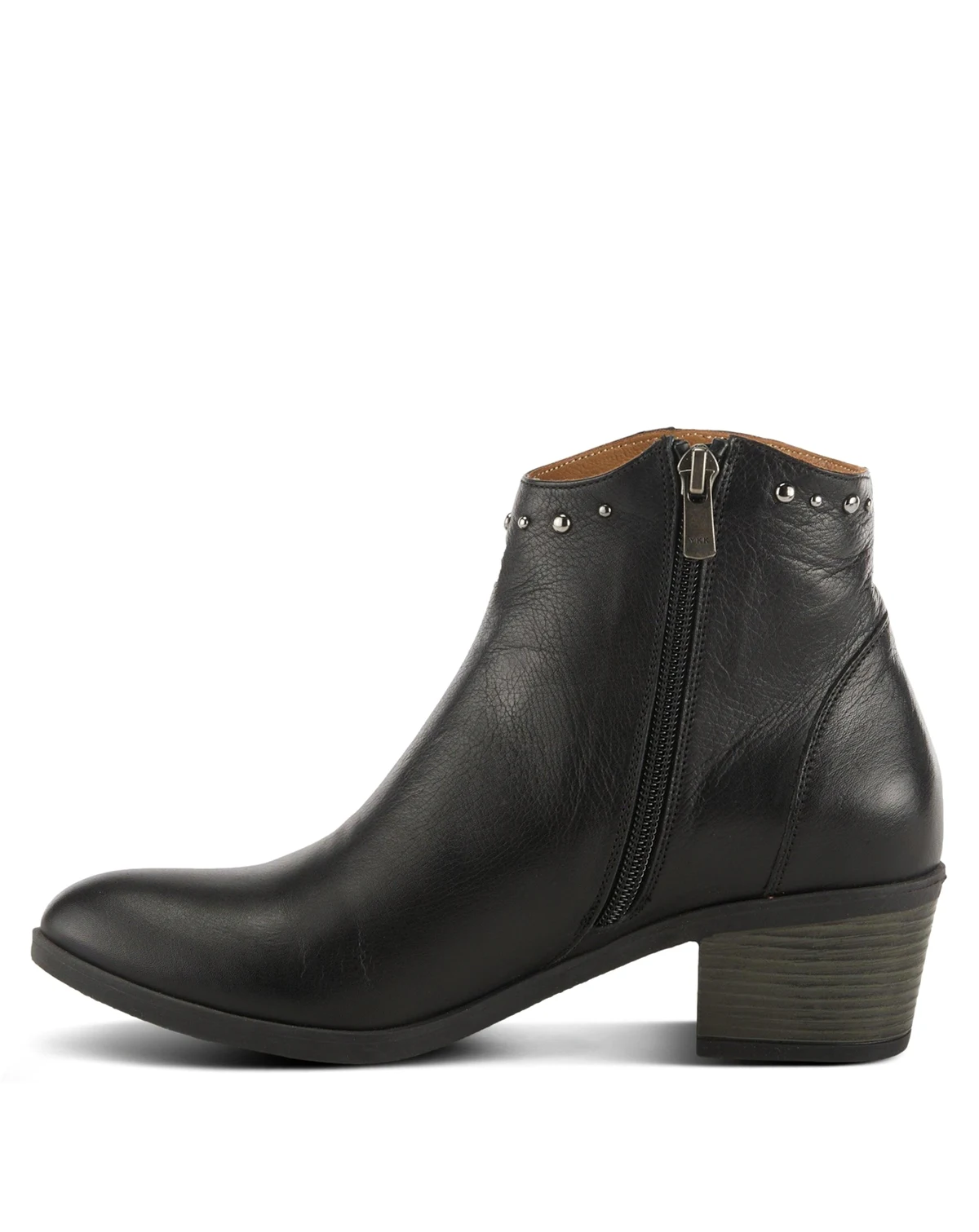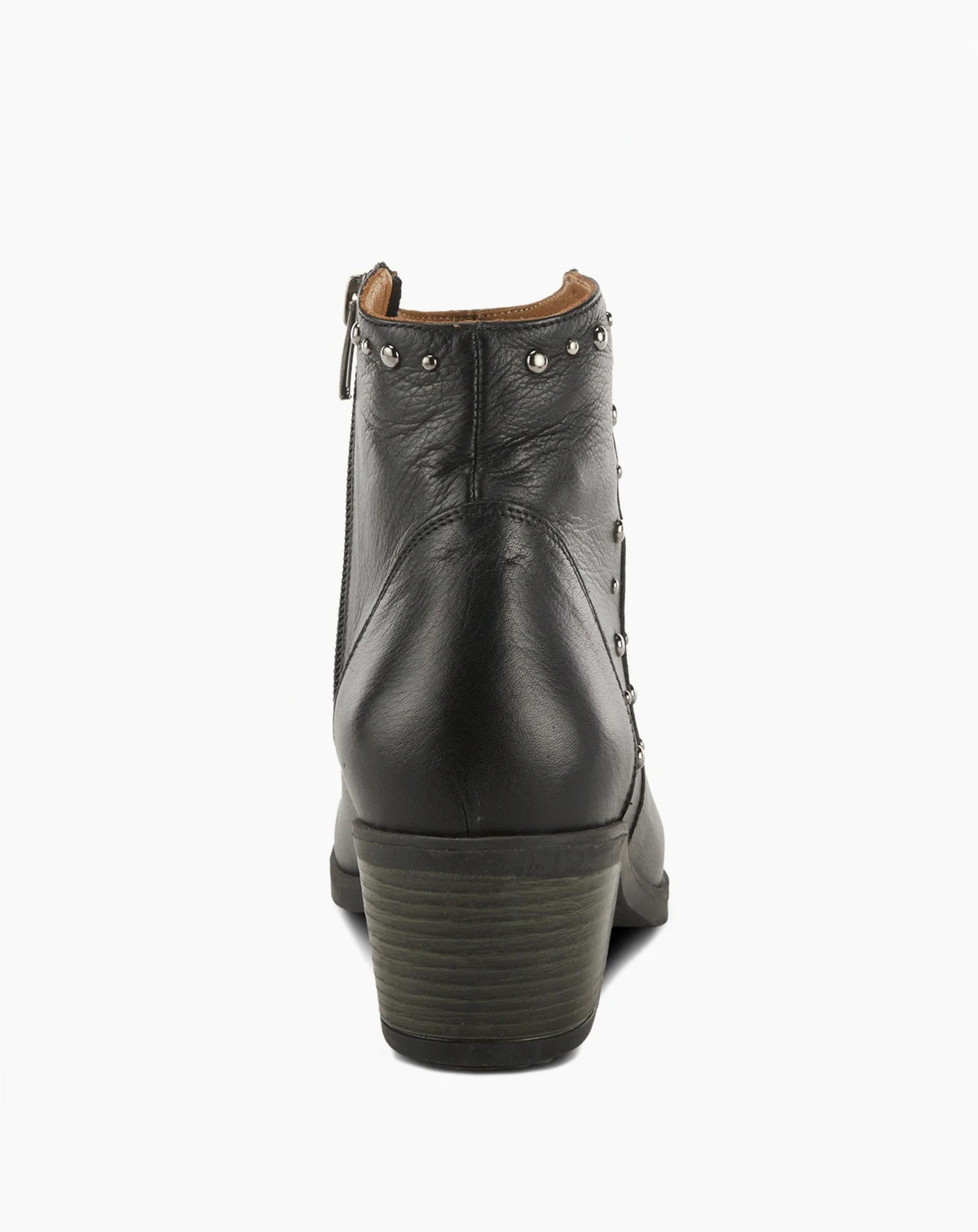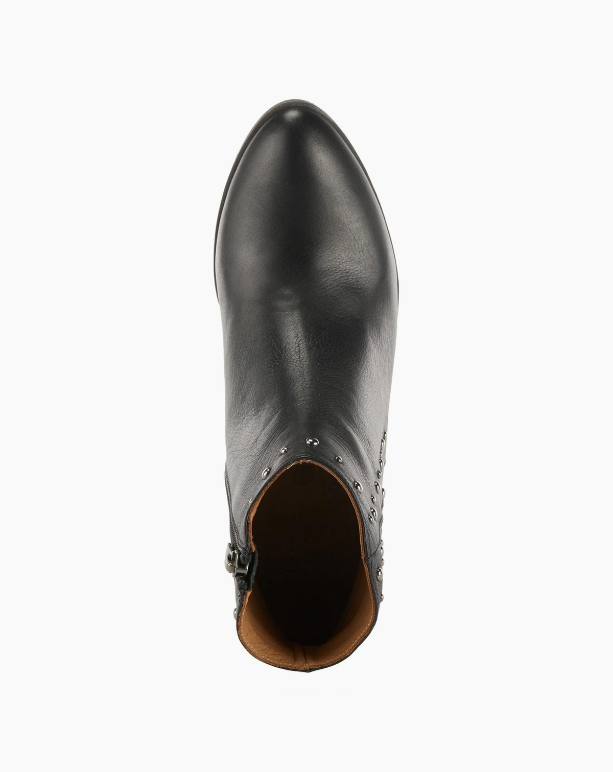 Saddle up in sleek style with this western-inspired leather bootie. Featuring edgy studded detailing, a flattering mid-height heel, and an easy inside zipper, this versatile boot adds flair to any outfit. A padded insole and flexible sole keep you comfortable from day to night.