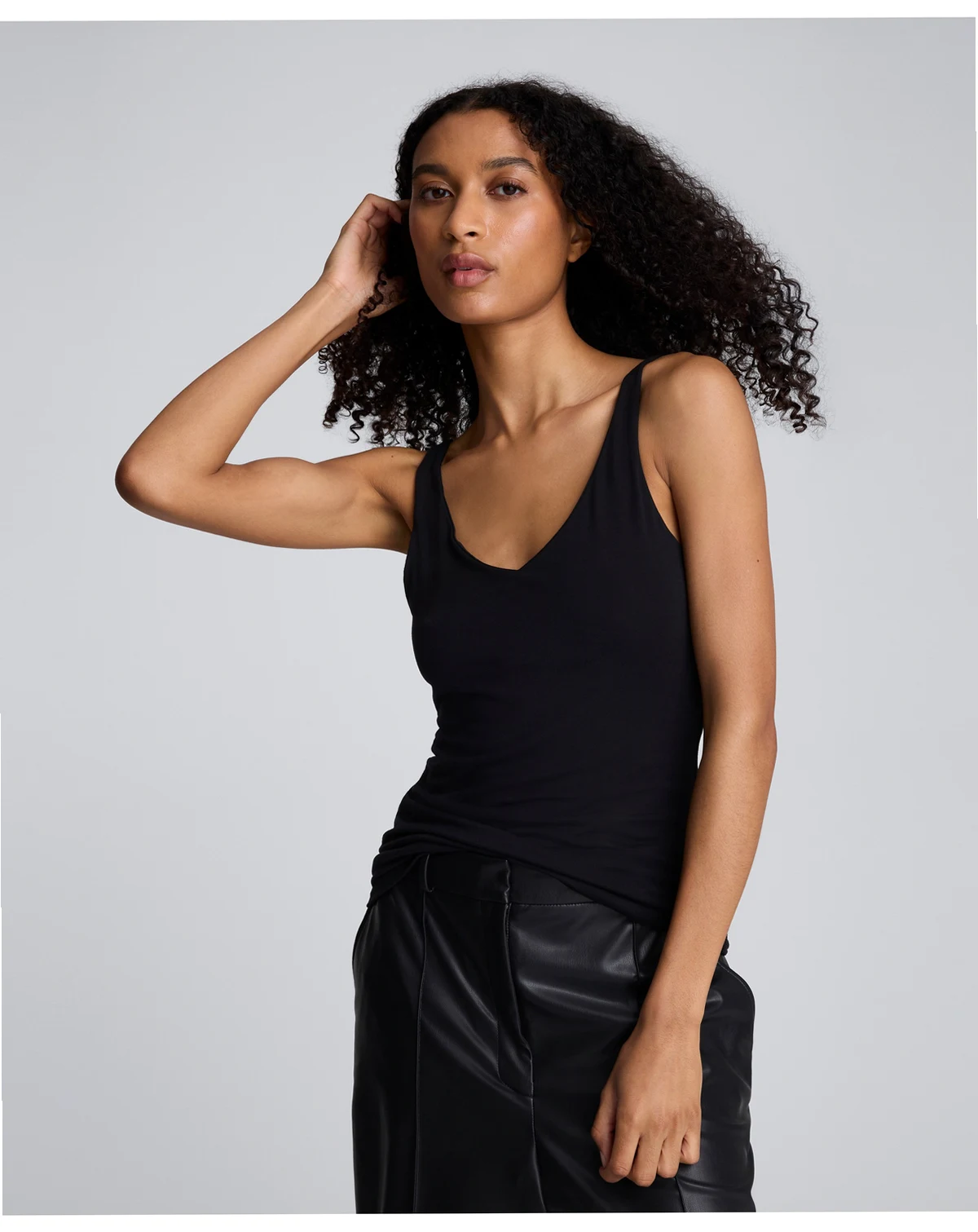 Feel fresh and comfortable all day in this V-neck tank top by Kenneth Cole. Crafted for breathability and freedom of movement, it boasts a flattering neckline. The sleeveless cut makes it perfect for layering or wearing solo.