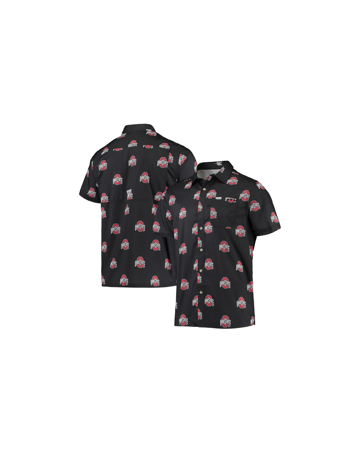 Make the most of warm weather when you wear this Ohio State Buckeyes Super Slack Tide shirt from Columbia. It features Omni-Shade technology for built-in sun protection, ventilation through the back mesh insert and a handy interior patch at the bottom for cleaning sunglasses. A repeating Ohio State Buckeyes pattern all over adds the perfect finishing touch to this eye-catching button-up.