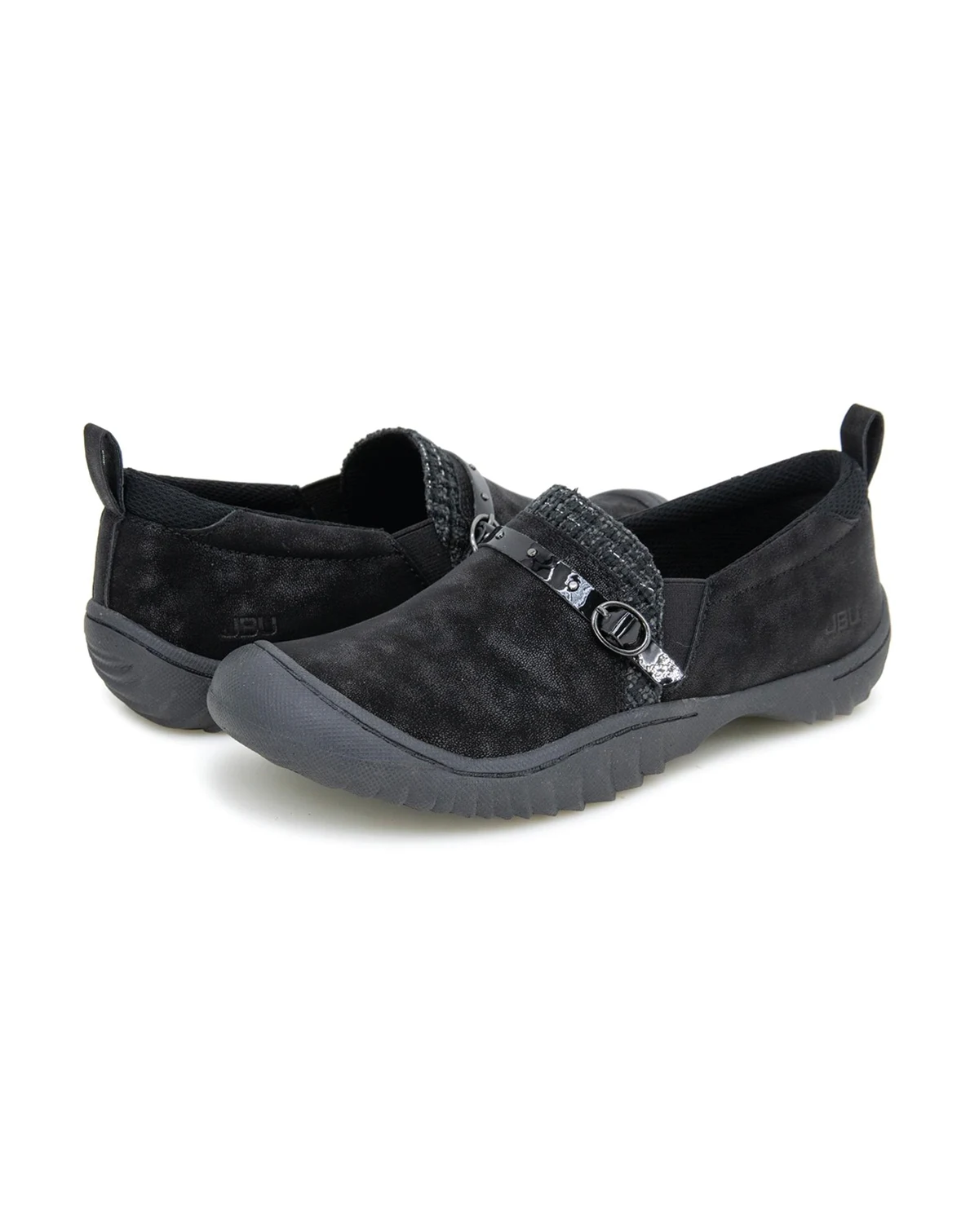 Our most eye-catching style yet - the Mavis slip on feature a collage of textures that create unique visual interest . Constructed from leather that's been burnished for a lived-in look, they have a subtle tweed panel overlaid with a polished buckle detail. The all-terra traction gives them superior grip while removable contoured EVA insoles allow you to customize the fit.