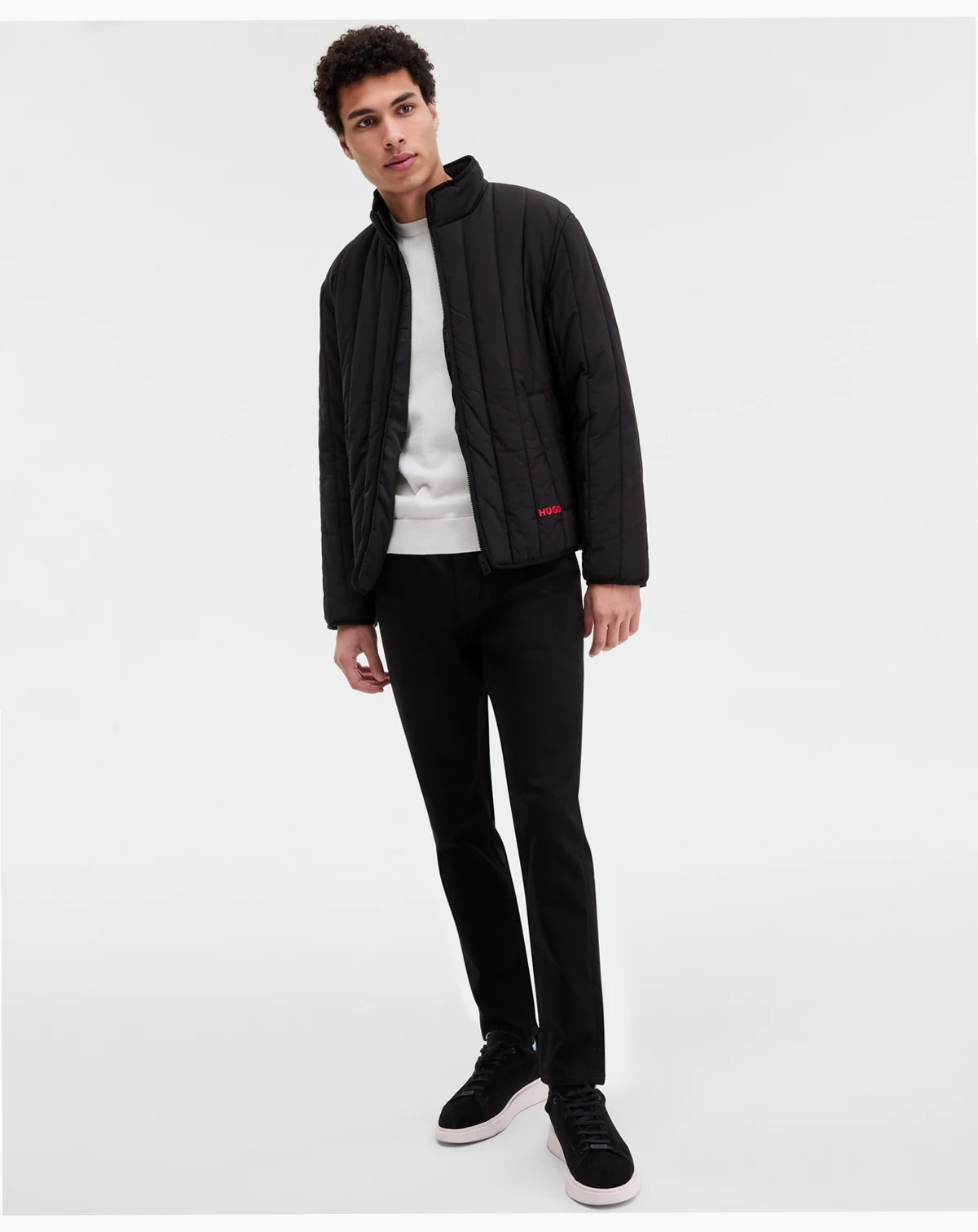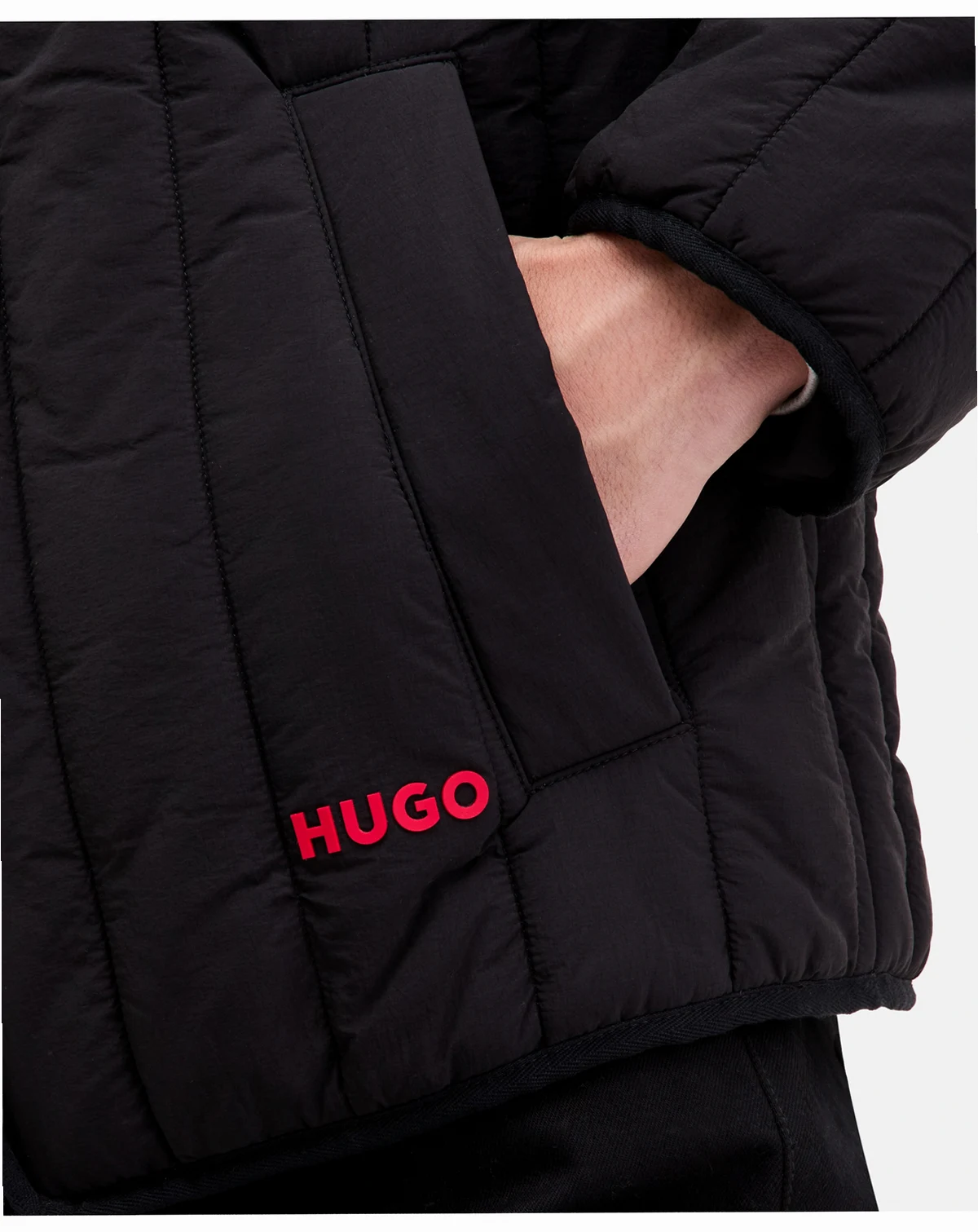 Layer on the Brenoto jacket from HUGO by Hugo boss, featuring a cozy quilted design with a bright red logo at the hem.