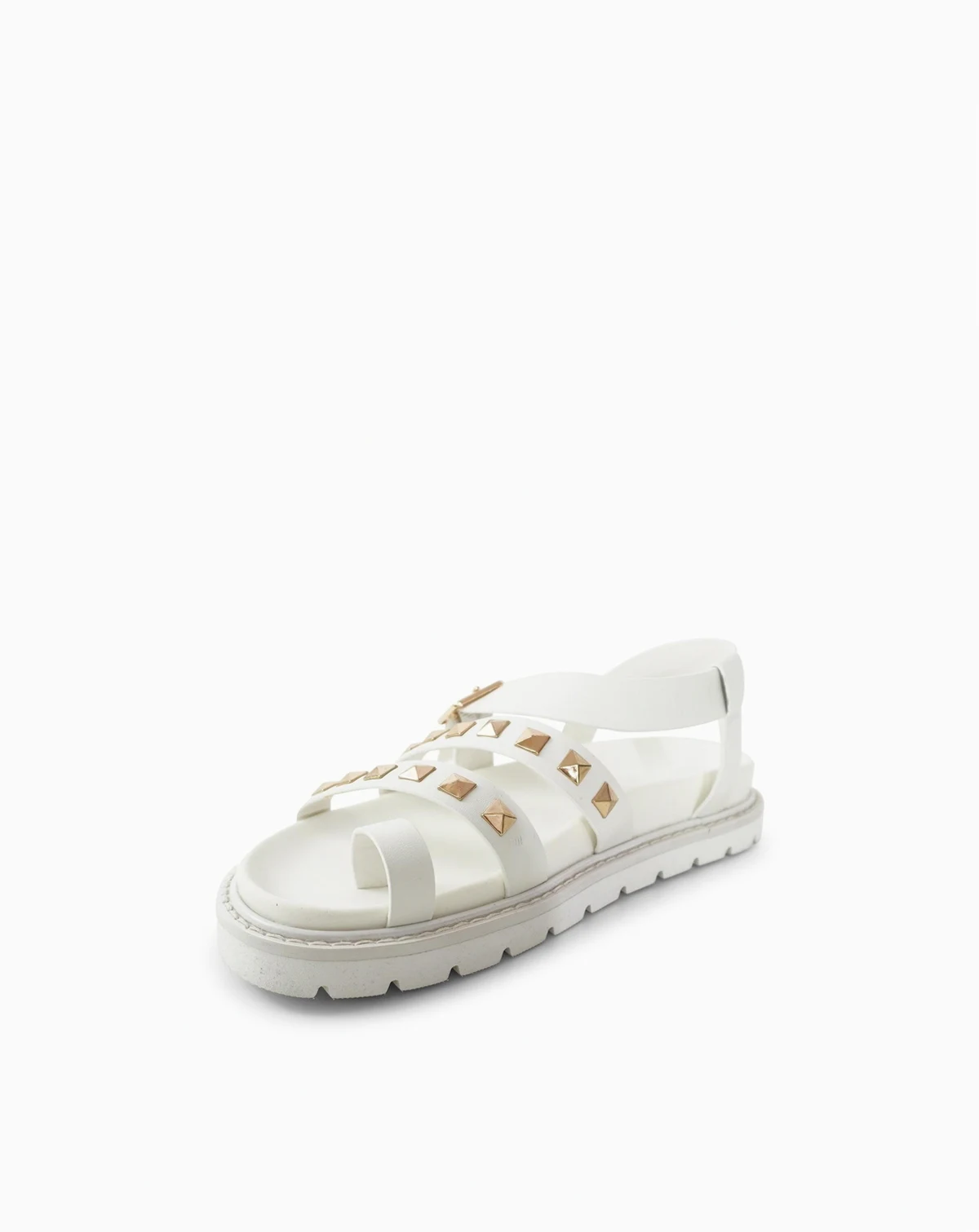 The lightly moulded footbed of the Morning Mood Chunky Stud Sandal sits on a comfortable, modern lug sole. The chunky base is balanced perfectly with pyramid stud embellished leather straps which wrap over and around the foot to ensure all day comfort without sacrificing on style.