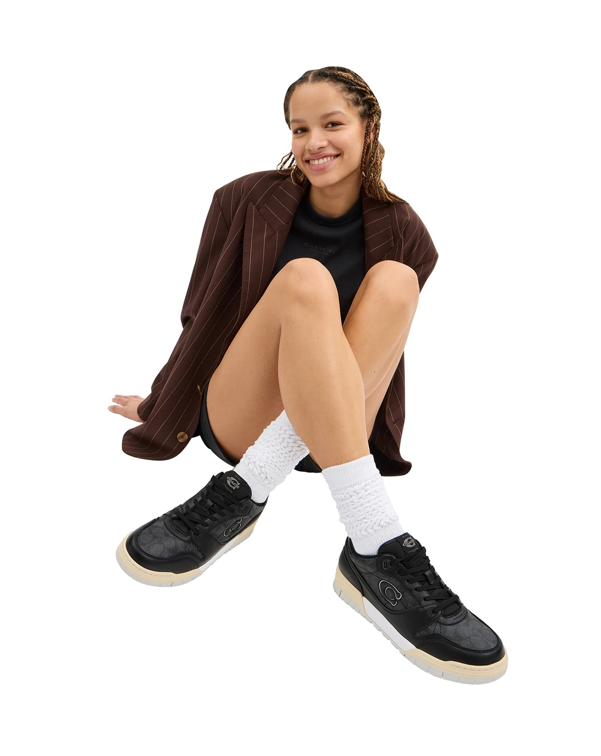 Count on a reliable fit in these COACH soho sneakers, designed with a round toe to keep feet comfortable during movement. The lace-up style allows you to adjust support as needed, while the single sole provides stable steps and all-day ease.