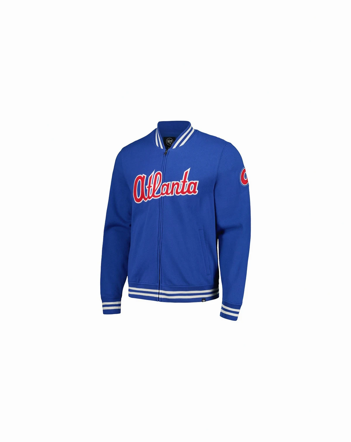 Layer up with a bold display of Atlanta Braves spirit in the form of this Pack Pro Camden Track Jacket. This full-zip outerwear features a distinct Atlanta Braves wordmark embroidered on the torso and on the left sleeve for a double dose of team pride. The two front pockets offer convenient small-item storage, while the classic design of this midweight track jacket makes it a fitting choice when you want outerwear with a touch of old-school flair.