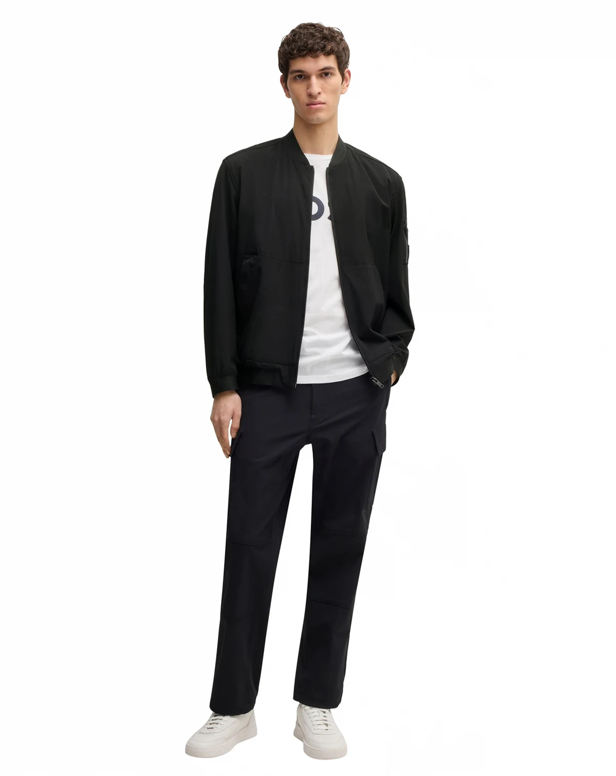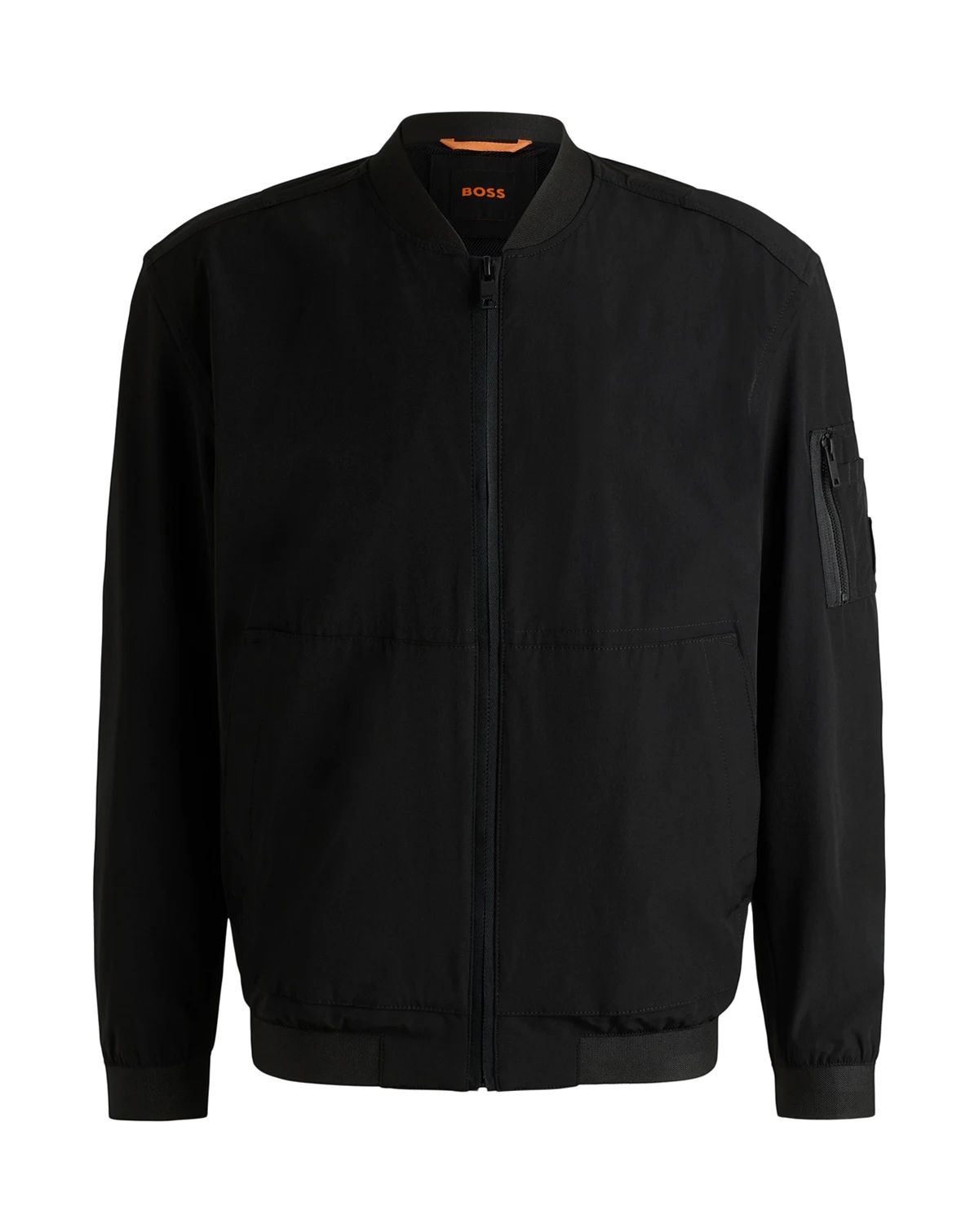 With stretch lining at the sleeves for boosted comfort, this BOSS Menswear bomber jacket is crafted in four-way flex fabric. Aviator-style sleeve pocket.